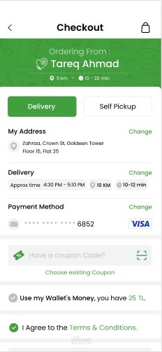 7 - تلقي إشعارات من المنصة أو من المطبخ عند استلام الطلب أو من السائق عند توصيل الطلب