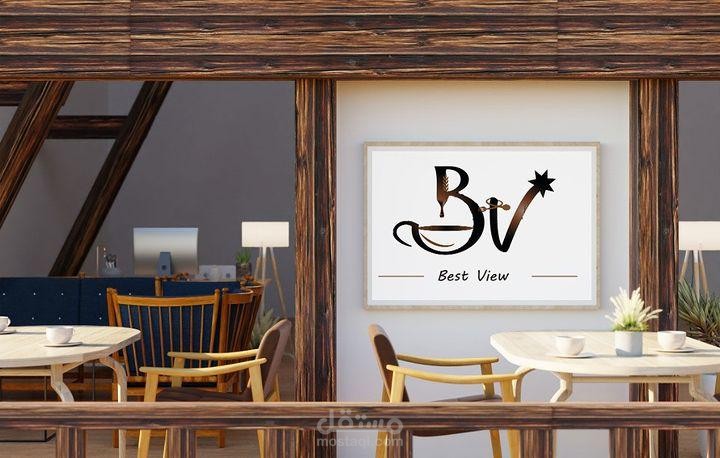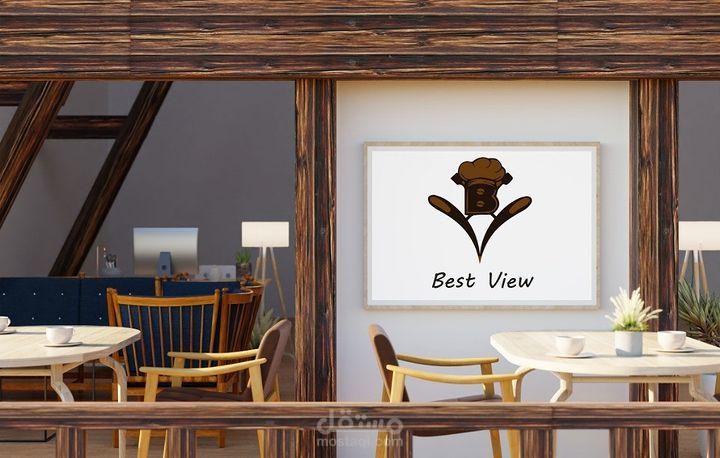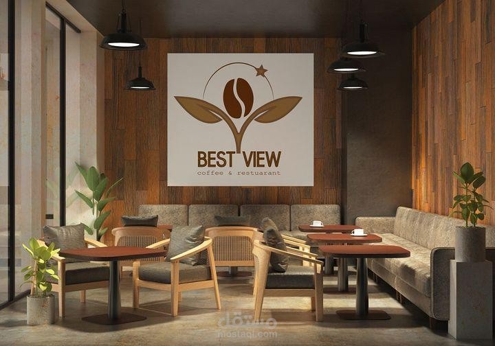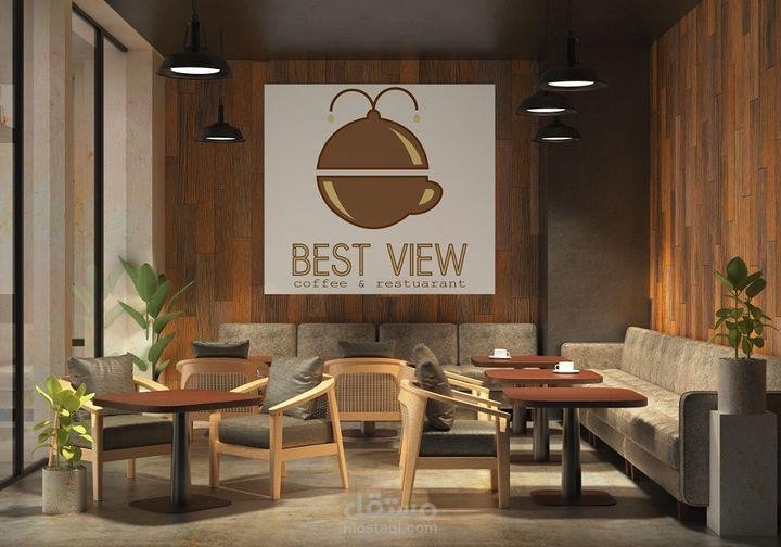 تصميم لوجو بعدة نماذج لمطعم وكافيه له اطلالة على نافورة
