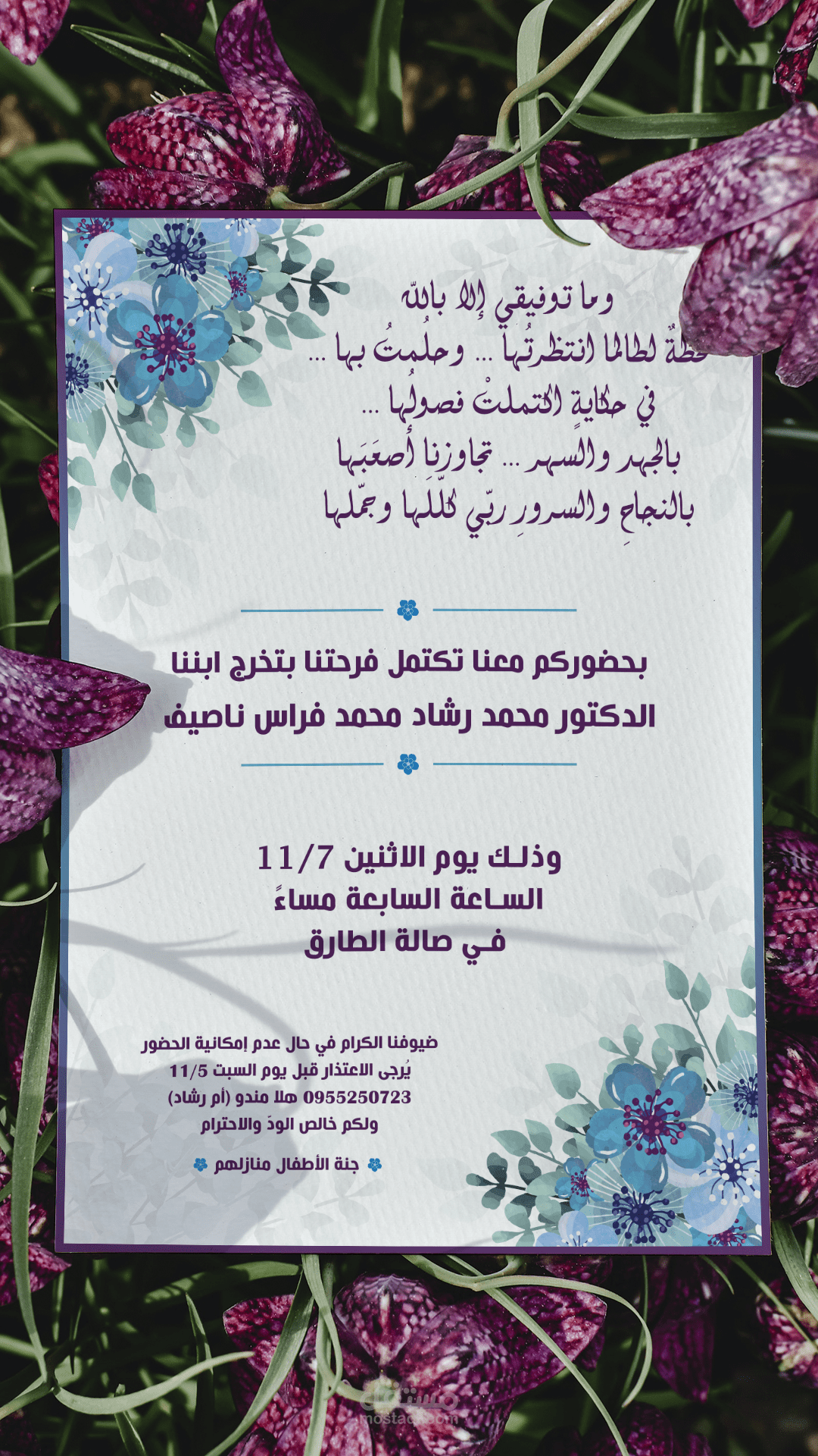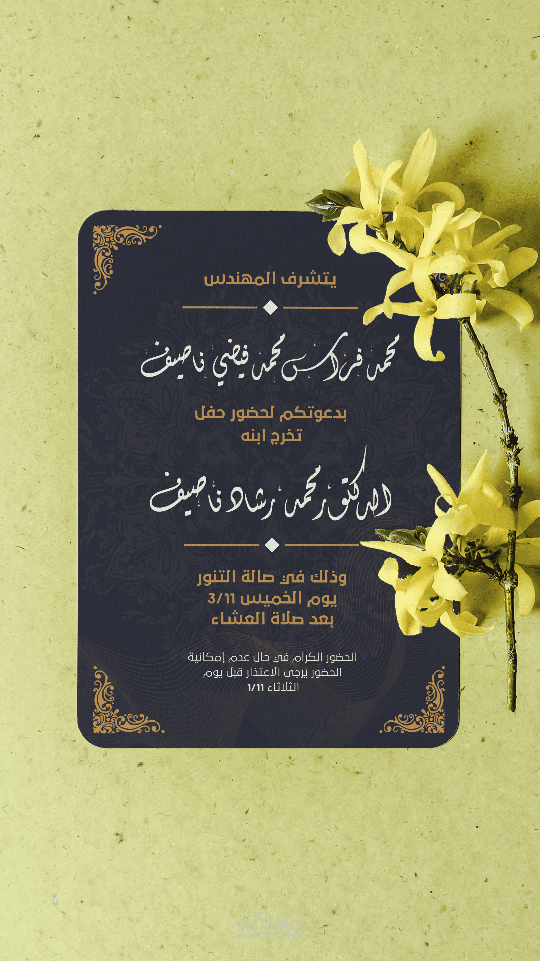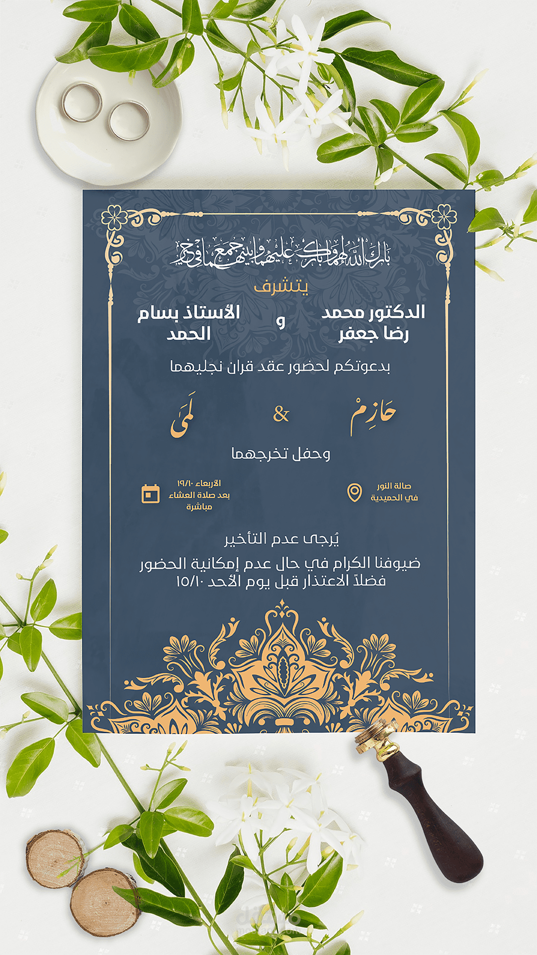 تصميم بطاقات دعوة لحفلات تخرج وحفلات زفاف.