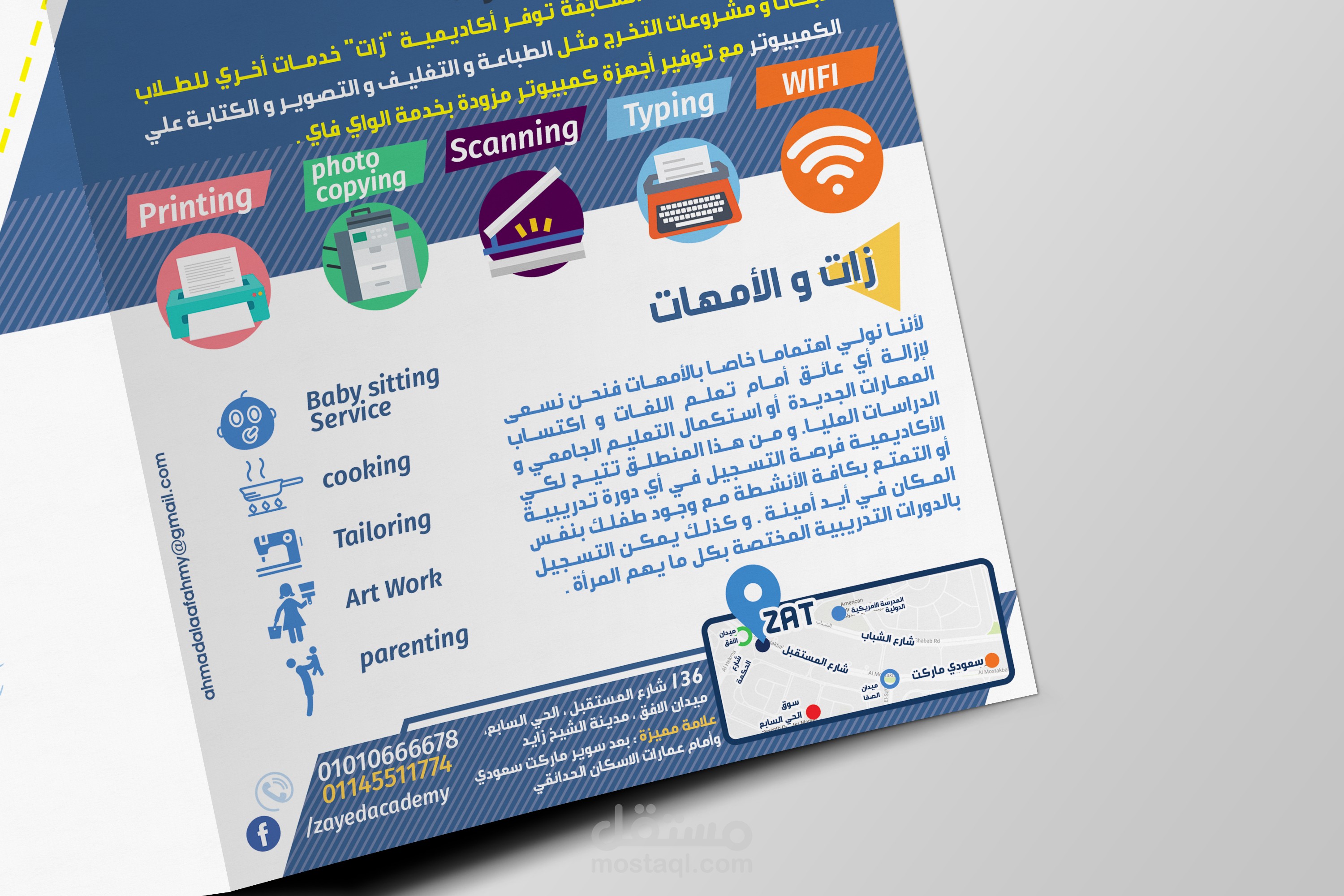 منشور لعرض الخدمات والأنشطة التي تقدمها أكاديمية زايد للتريب والتنمية " زات" - مدينة الشيخ زايد , الجيزة , مصر