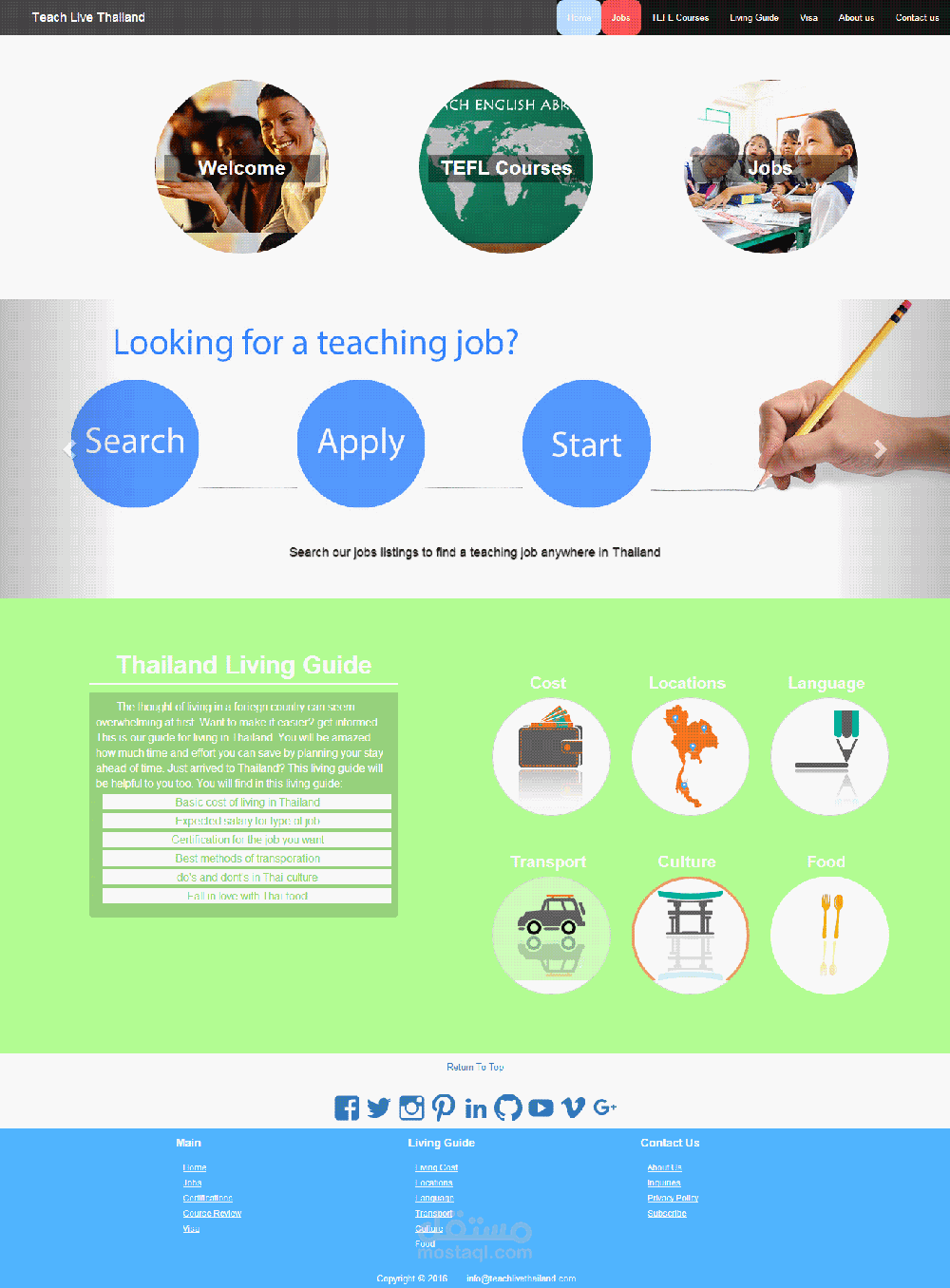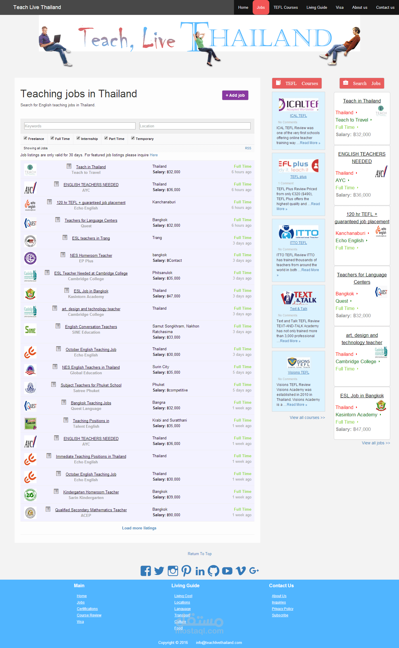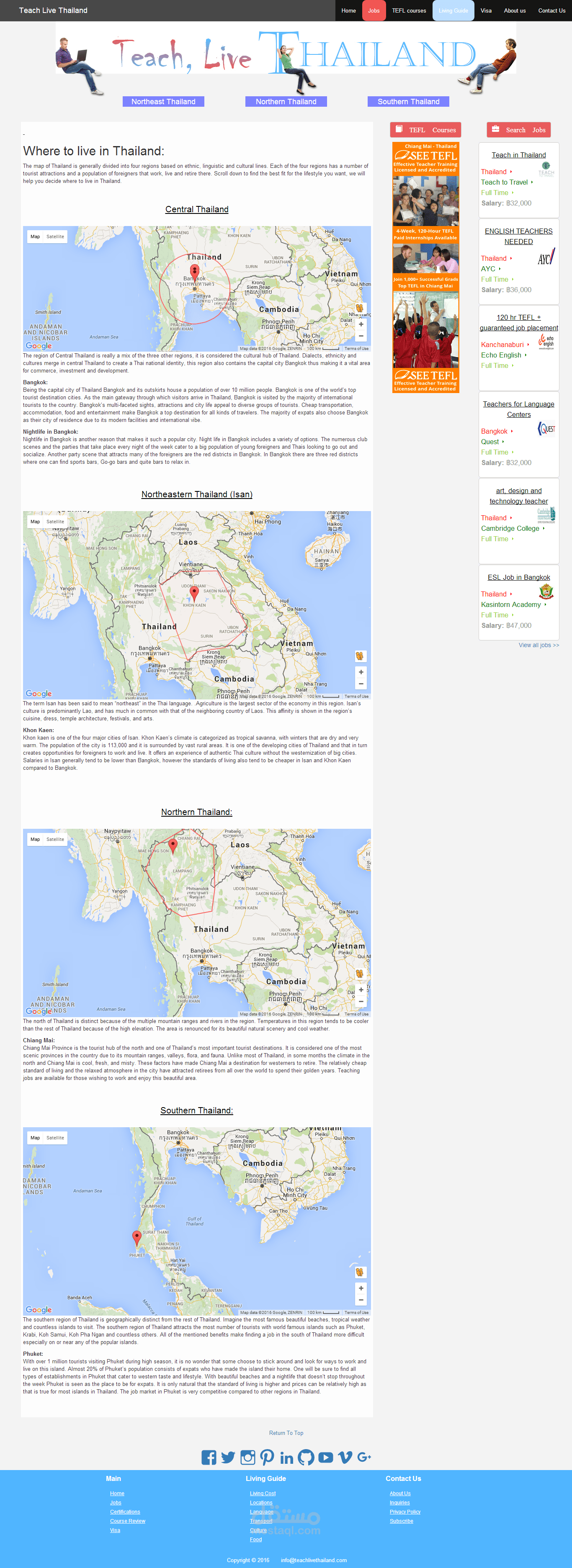 موقع معلموات عن العيش في تايلاند. الموقع يحتوي عن محرك بحث عن اعمال تدريس اللغة الانكليزية في تايلاند.