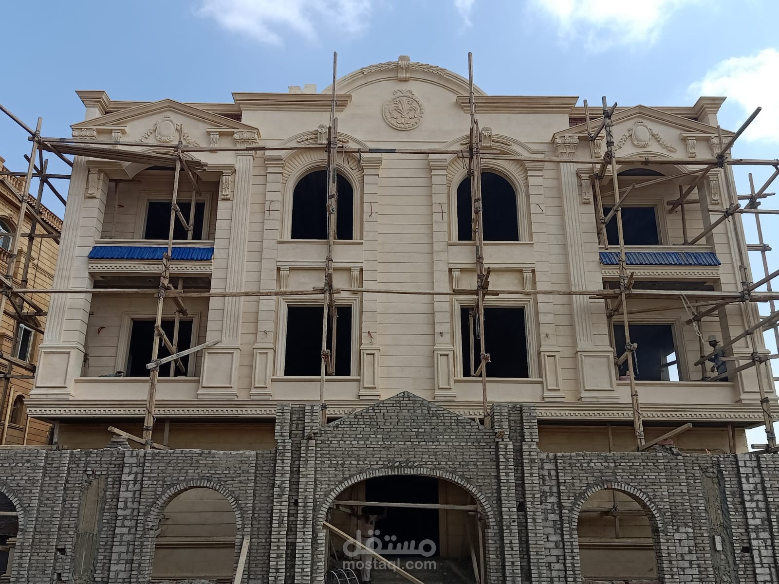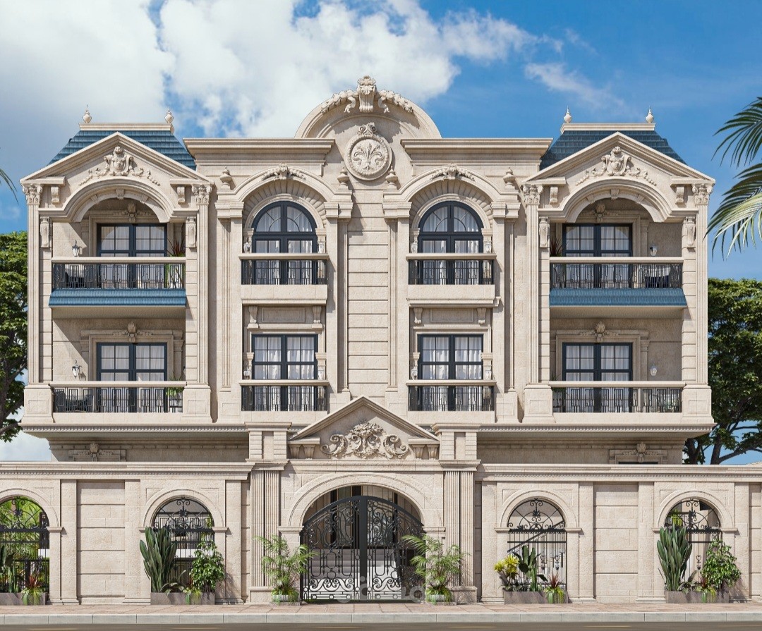 استخدام مواد بسيطه للتشطيب مثل الحجر الهاشمي والقرميط الأزرق مع بعض الكرنيش البسيطه التي تعطي طابع الفخامه