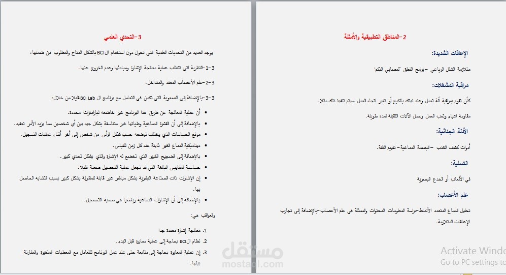 حيث تم العمل بشكل جزئي على برنامج Labview بورنامج BCILab.