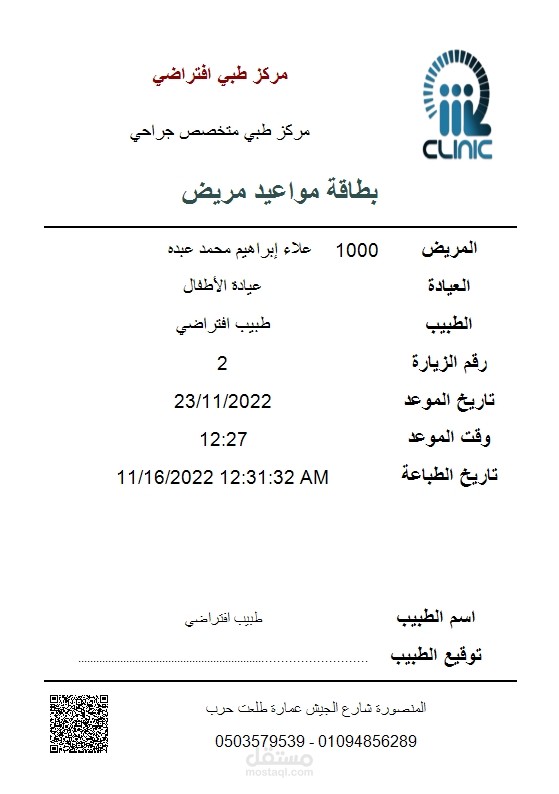 15- نظام طباعة ريسيت للمريض يوضح دوره وفاتورة عند خروجه