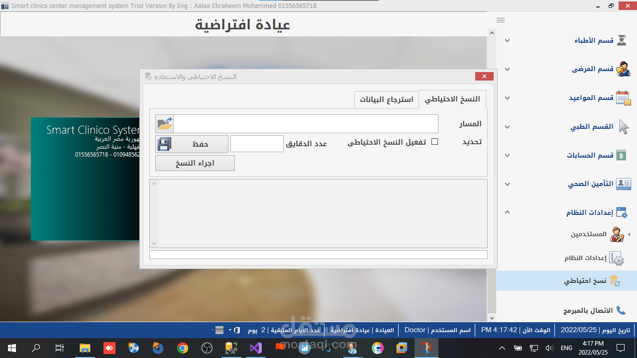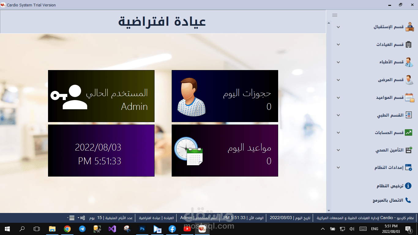 السيستم بيعمل لجميع التخصصات مثل الجلدية والليزر والعلاج الطبيعي والباطنة والجراحة و العظام و التجميل وغيرها من التخصصات الاخري
