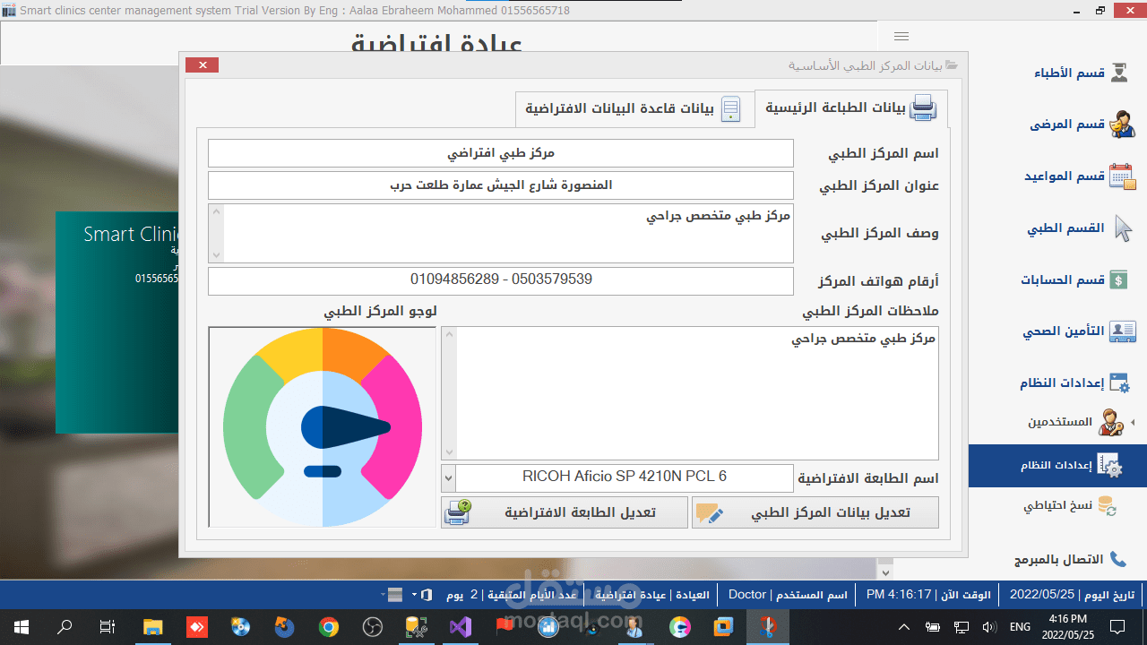 - إضافة الإيردات للمركز الطبي و العيادة .