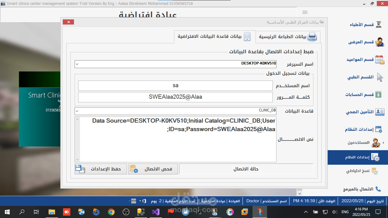 يوفر هذا النظام للعيادات نظام إداري فعال يسمح بتحسين جودة الخدمة التي تقدمها لعملائك وإدارة جميع المواعيد ومعلومات المريض ومهام إدارة العيادة. والاحتفاظ بسجلات المرضى وتعزير أرباح عيادتك والتركيز على كيفية تحسين خدماتك لإرضاء عملائك وتوسيع قاعدة عملائك وكسب المزيد مع إدارة الوقت لكل مريض لأنه نظام إدارة العيادة يمنحك من خلال جمع المعلومات التي تحتاجها حول تاريخ المريض والسجل الطبي له متابعة كافة الحسابات المالية