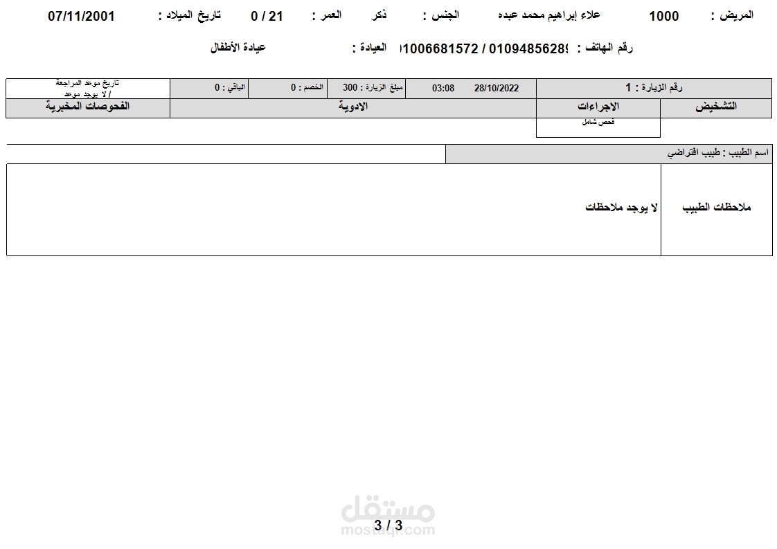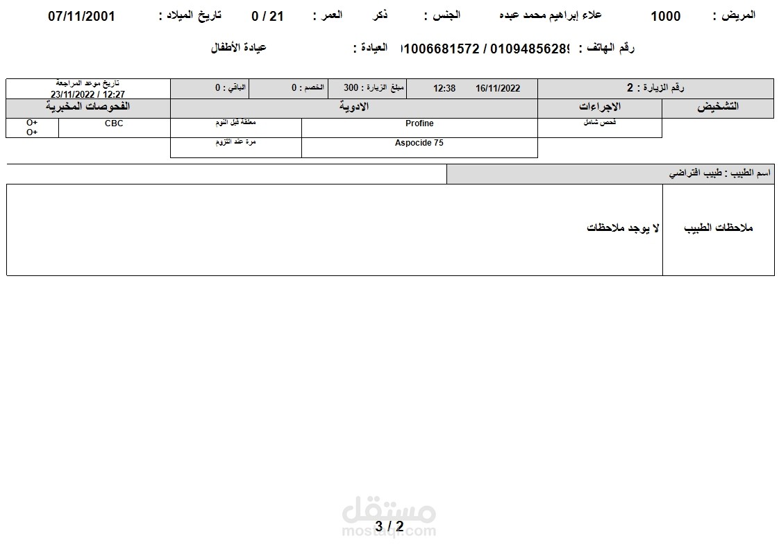 - إرفاق التحاليل الخاصة بالمريض وتدوين نتائجها و الملاحظات بها .