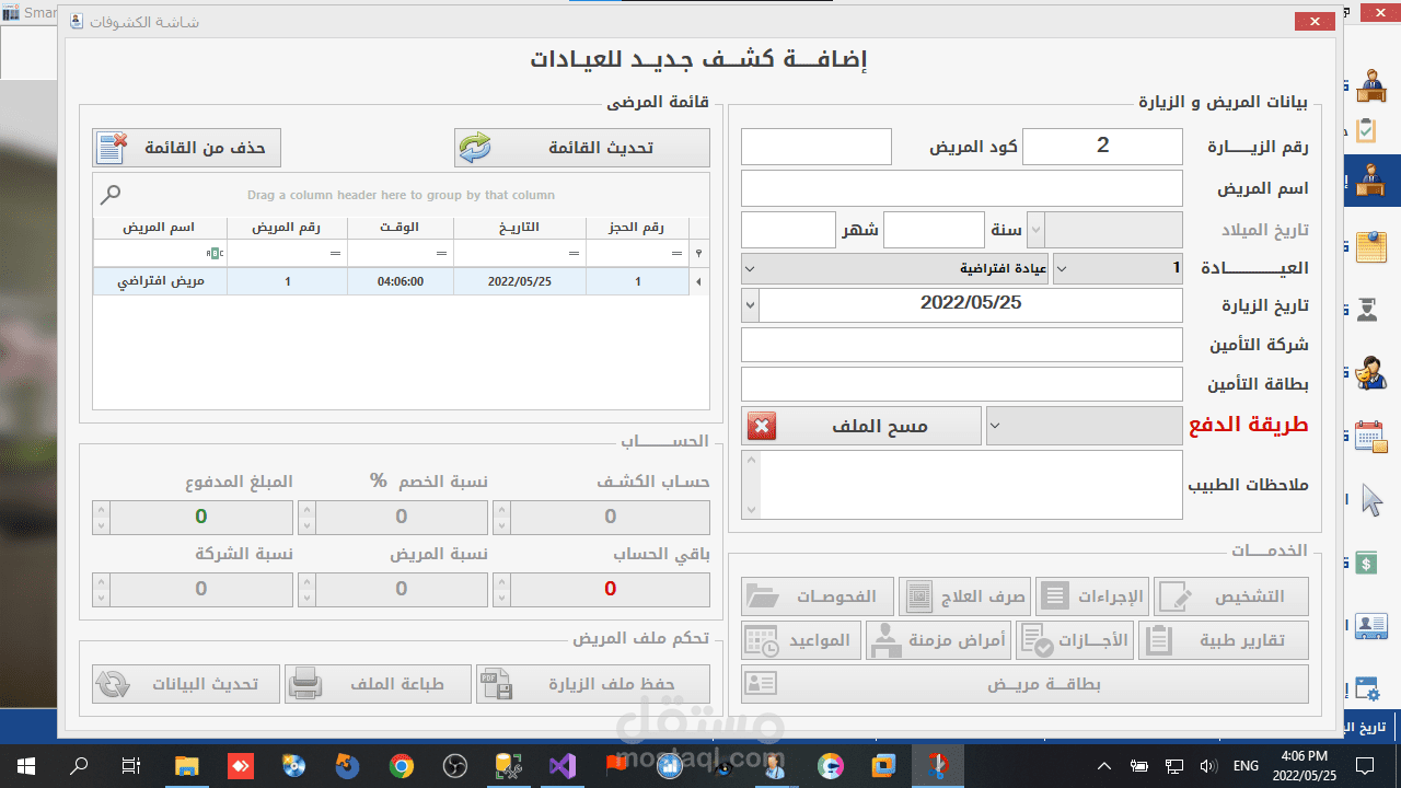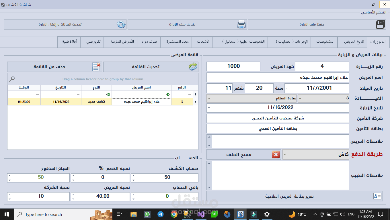 - مراجعة الحسابات الخاصة بالمريض ومعرفة مديونيات المريض .