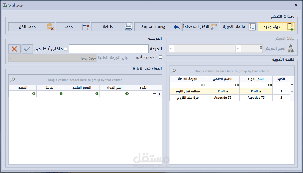 - عمل الروشتات الخاصة للمريض وسهولة طباعتها من نفس الشاشة .