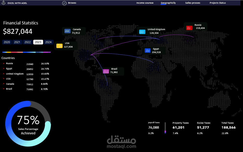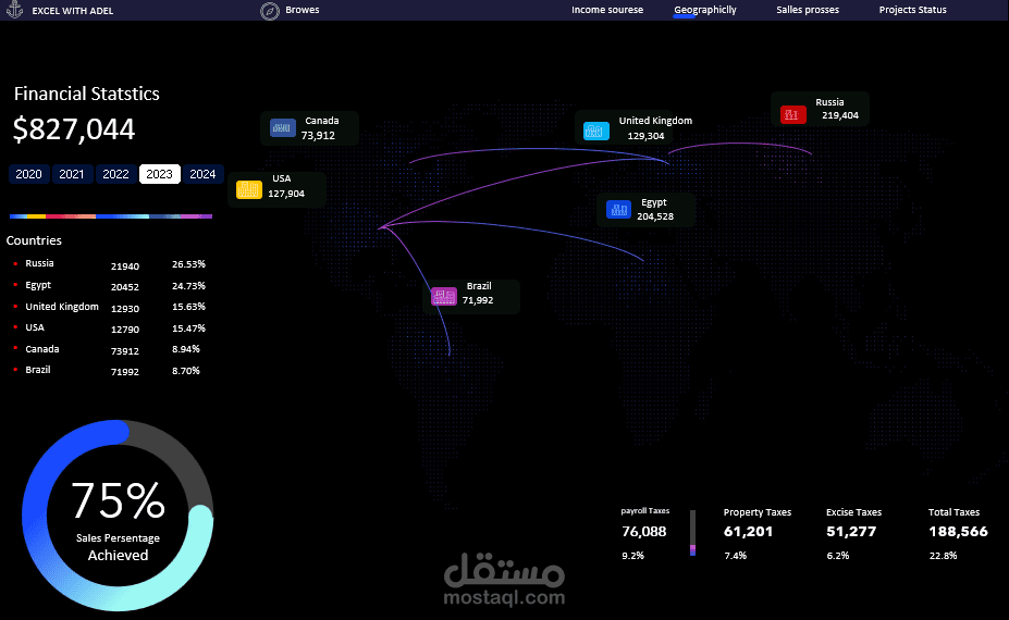 القسم الثانى : تحليل لاجمالى الدخل لكل مصدر للدول التى تتعامل مع المنشأة مع بيان متوسط الدخل بالنسبة للهدف المأمول تحقيقة