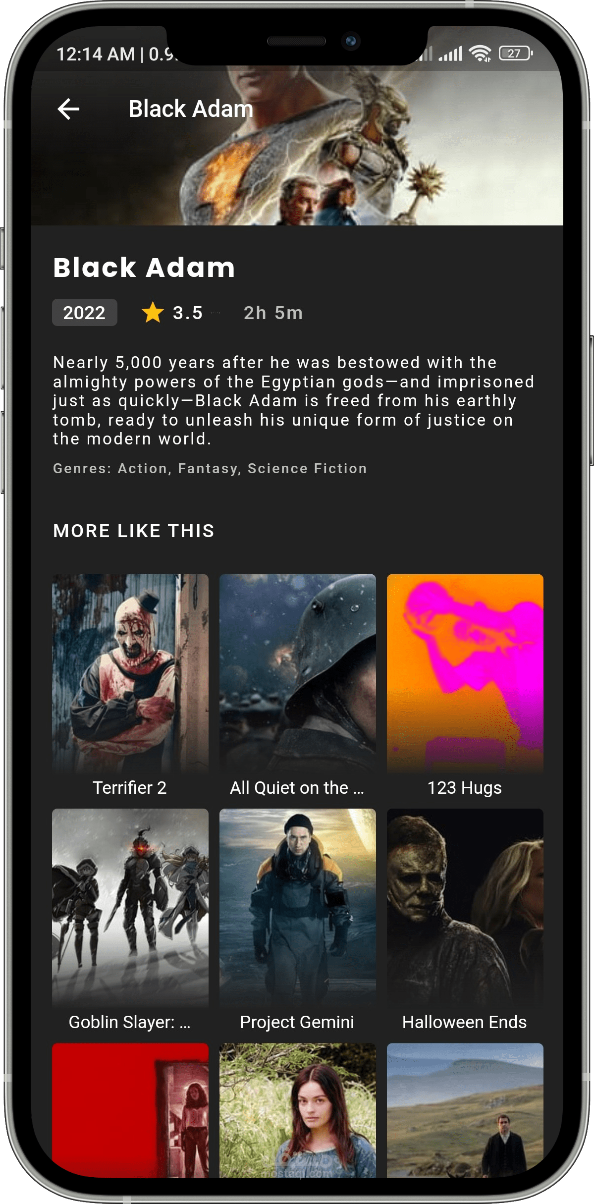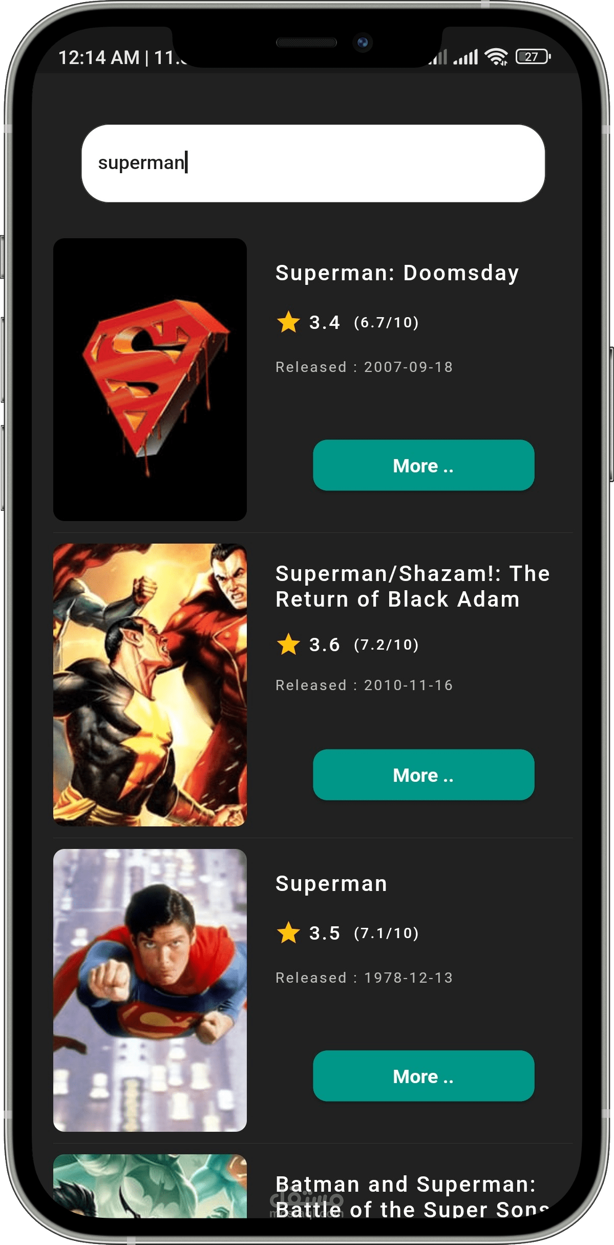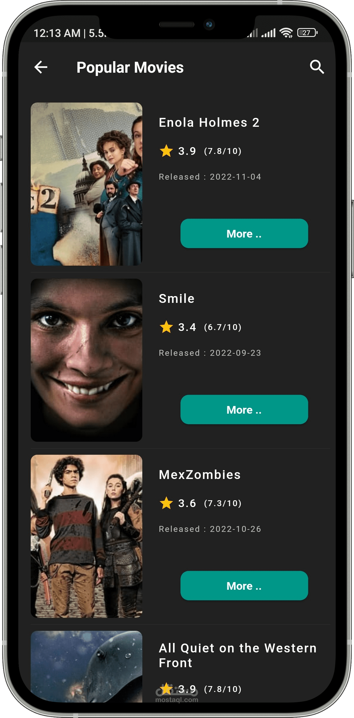 تطبيق لعرض جميع الافلام و التقييمات الحاصل عليها و اشرح الاحداث التي يدور حولها ، ففي الصفحة الرئيسية يوجد في المقدمة احدث الافلام (تريند) و ايضا يوجد اكثر الافلام شهرة و ايضا اكثر الافلام الحاصلة علي تقييمات.