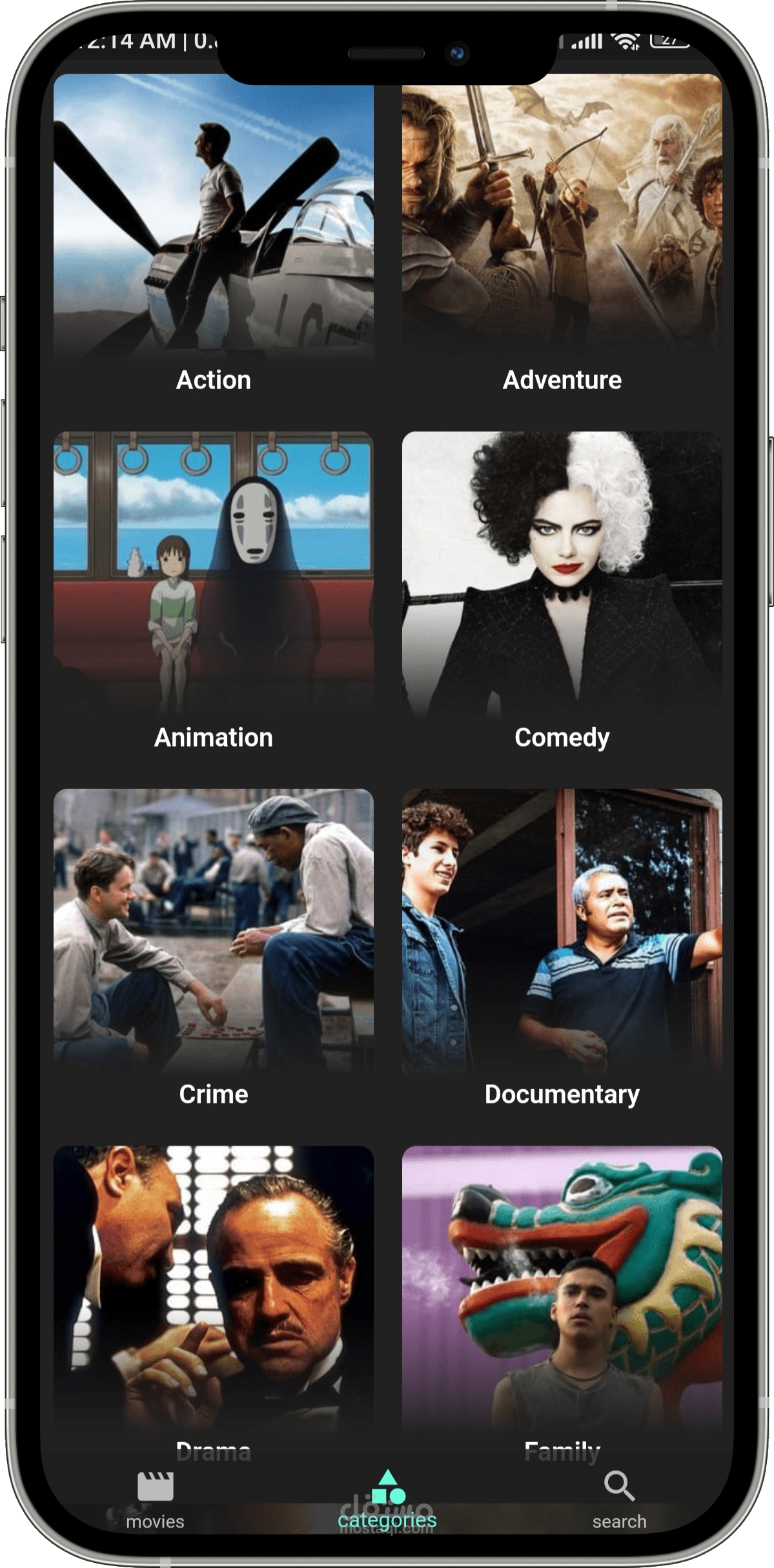 كما يوجد صفحة التصنيفات حيث يمكنك اختيار نوع الفيلم