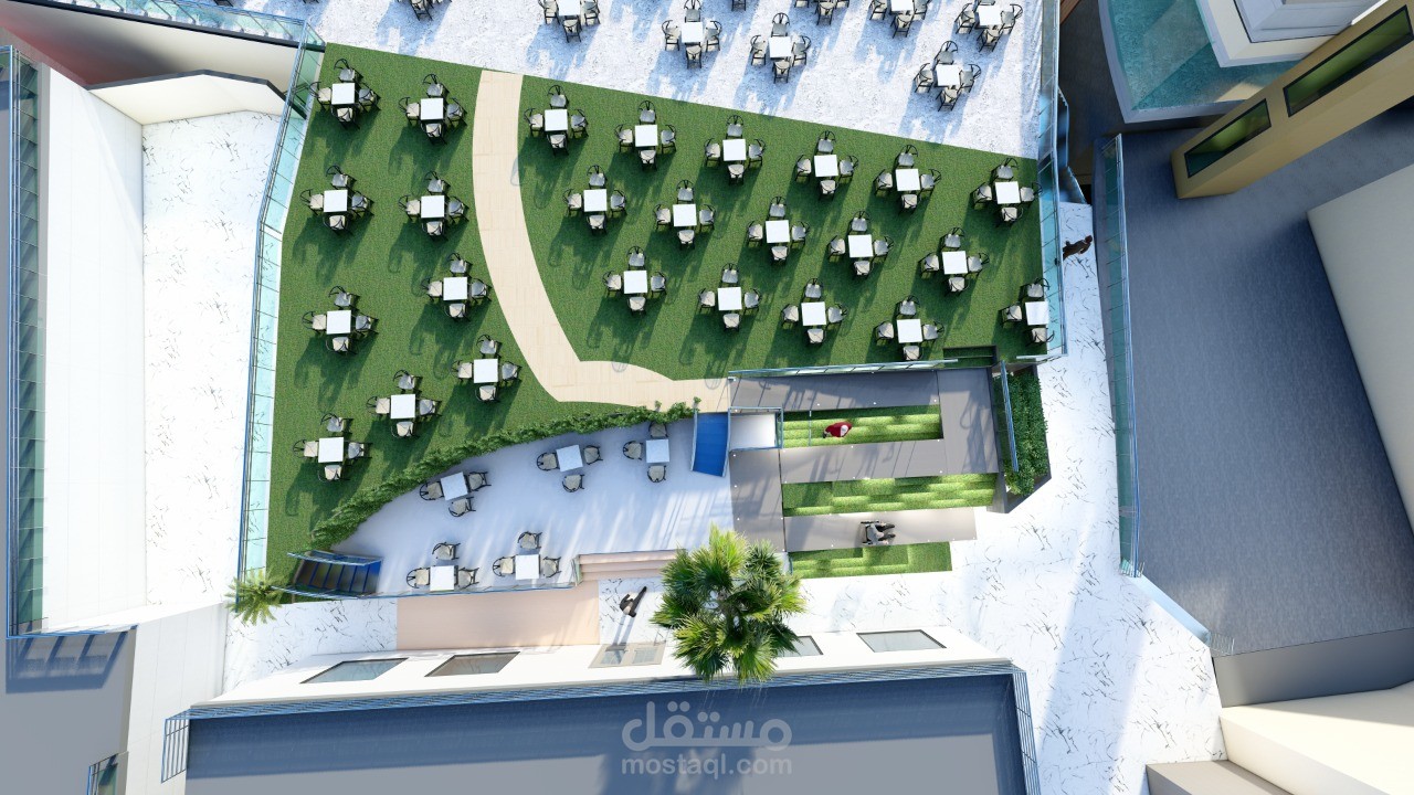 تصميم مدخل رخام لكافيه مفتوح في نادي كبار السن