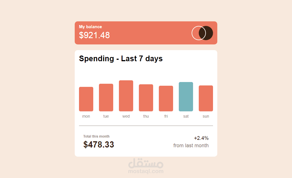 . create a responsive expenses-chart-component using HTML5 CSS3 JavaScript