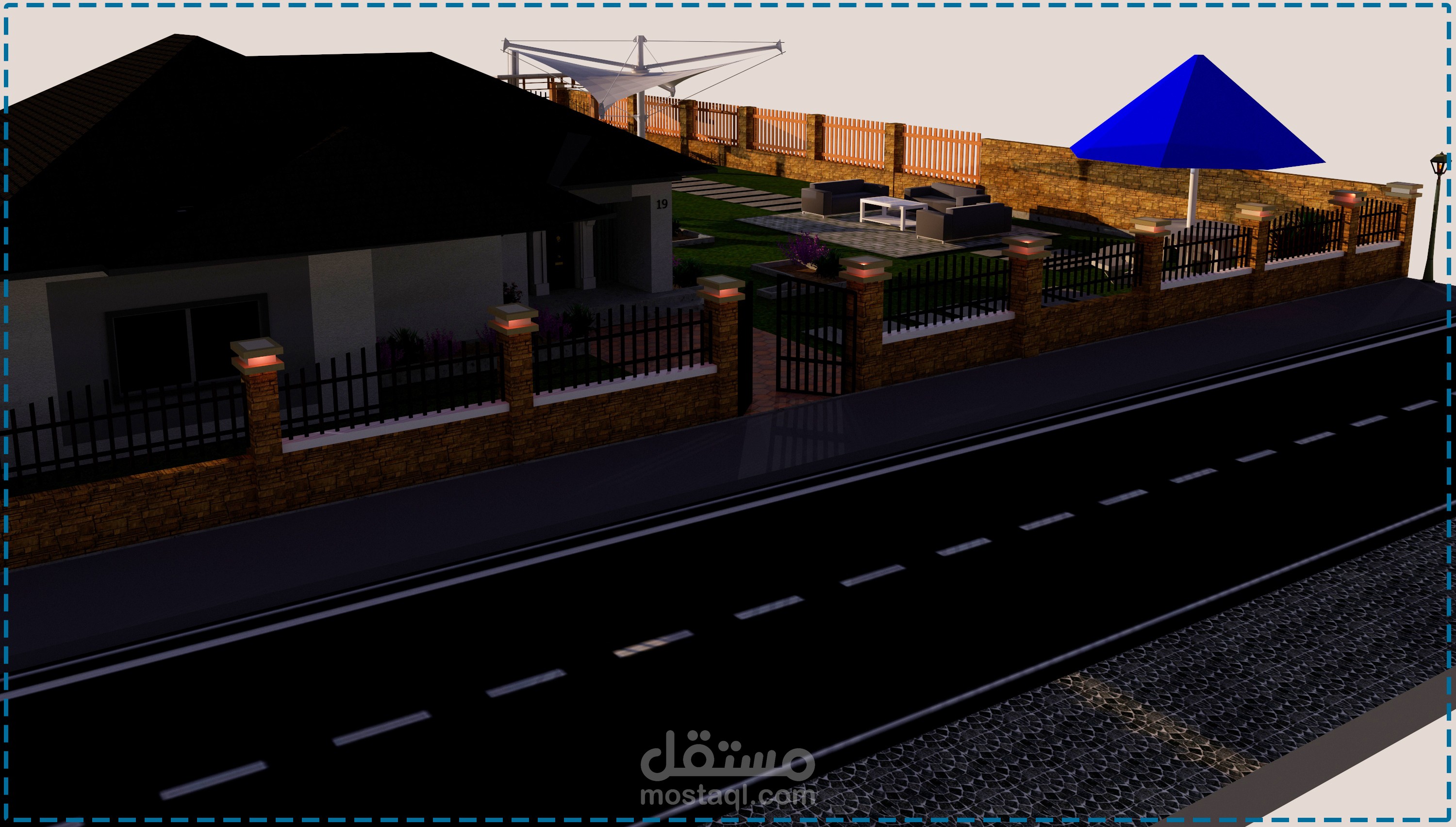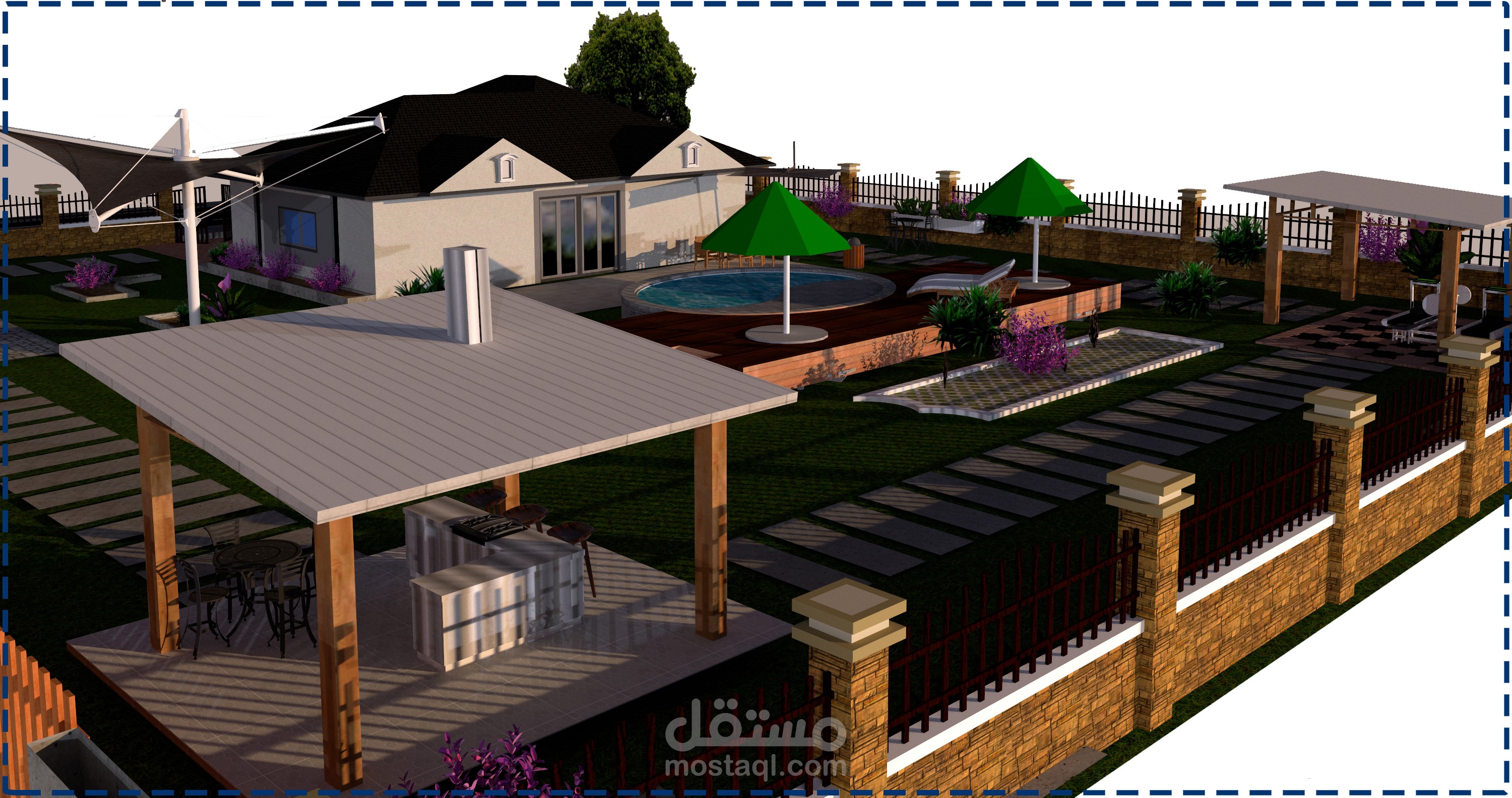 شاليه بمساحه 1000 متر مربع موقع عليه الفرش والlandscape