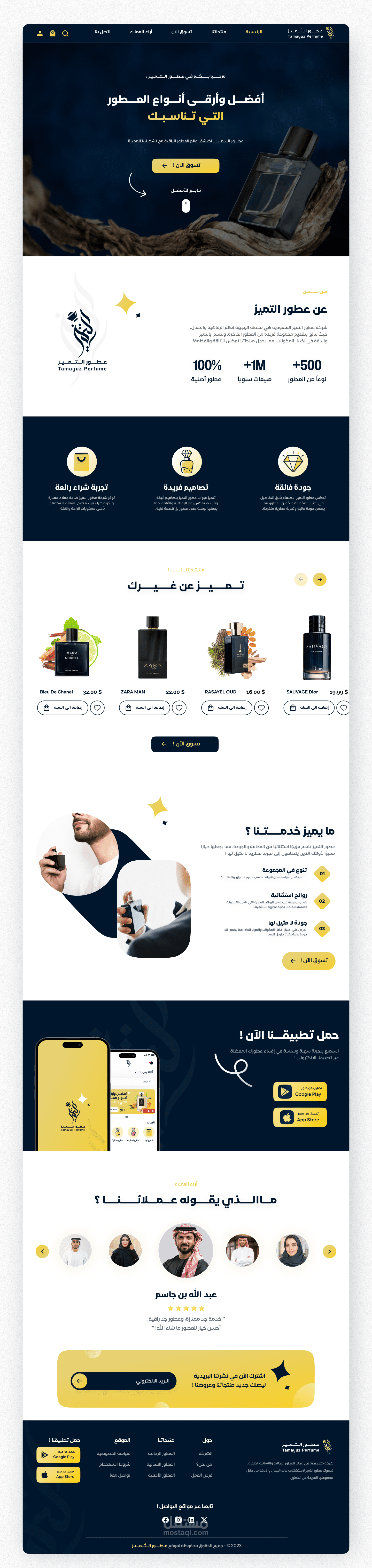 صفحة هبوط لمنصة e-commerce لشركة انتاج العطور السعودية "عطور التميز"