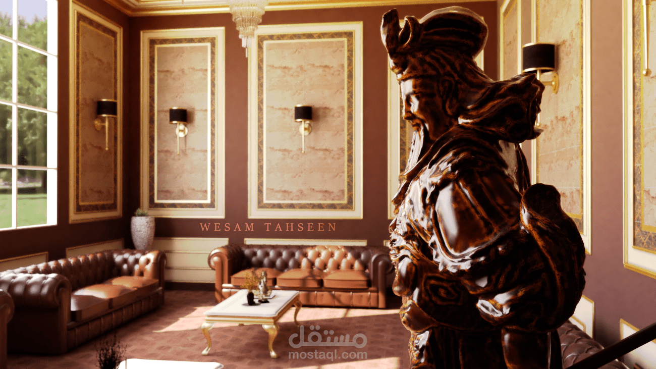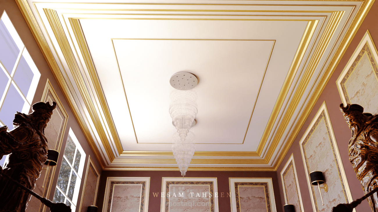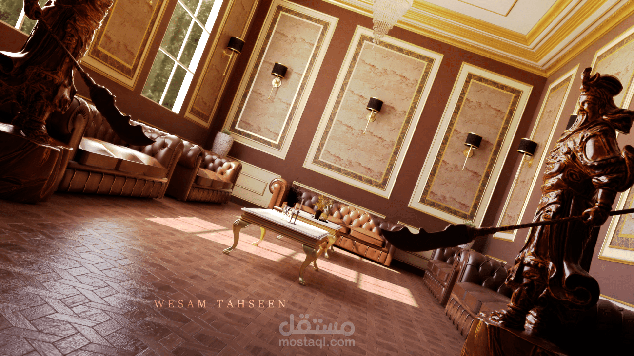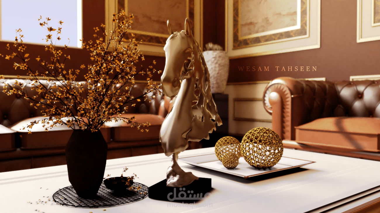 مقترح تصميم داخلي لمجلس مع مراعاة استخدام المواد بدقة تامة