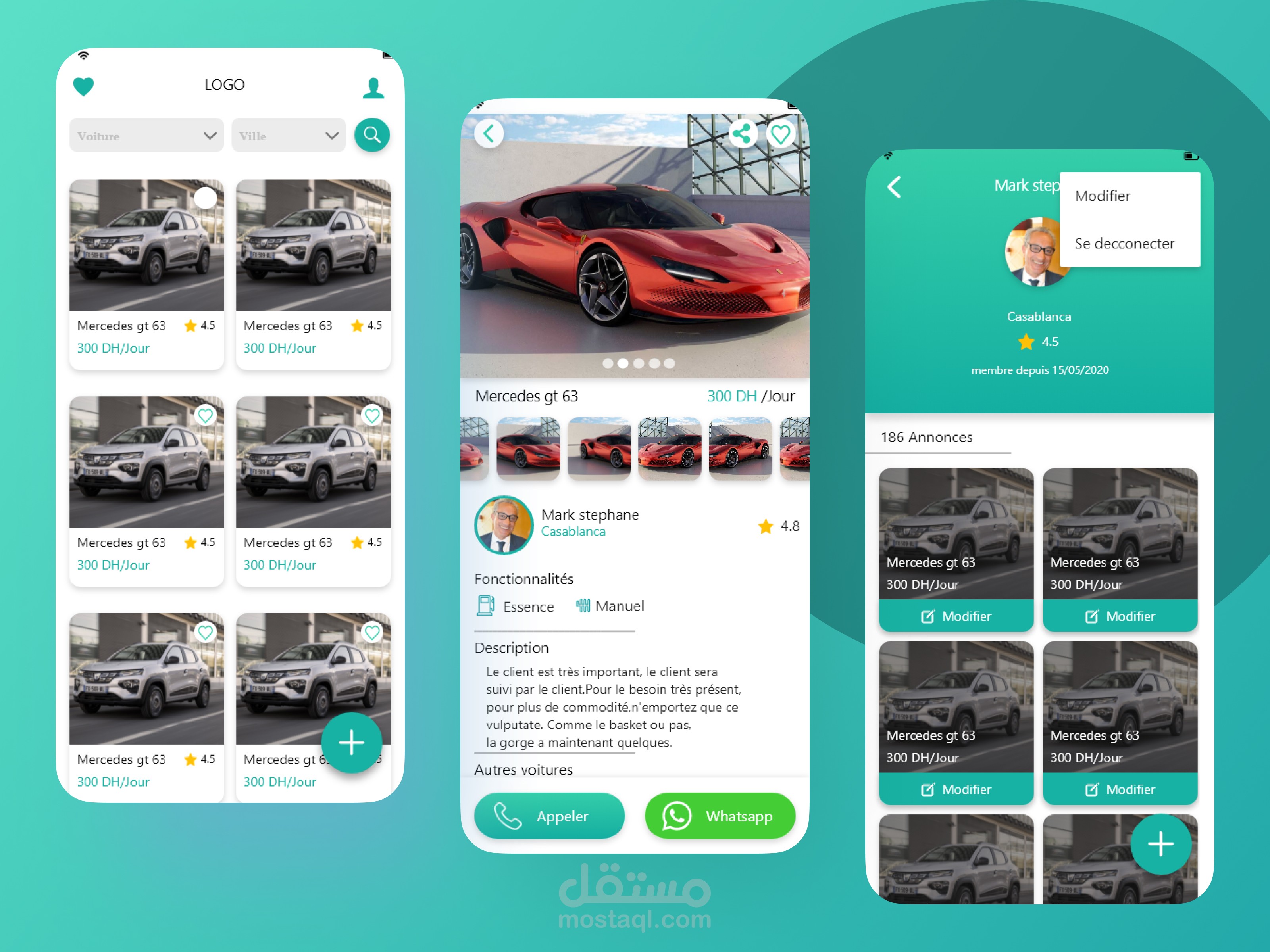 بامكان المستخدمين التسجيل واضافة سيارات لتأجيرها او استئجار السيارات مع امكانية اضافة السيارات الى المفضلة والتواصل مع مالكها عبر الواتس اب او الهاتف.