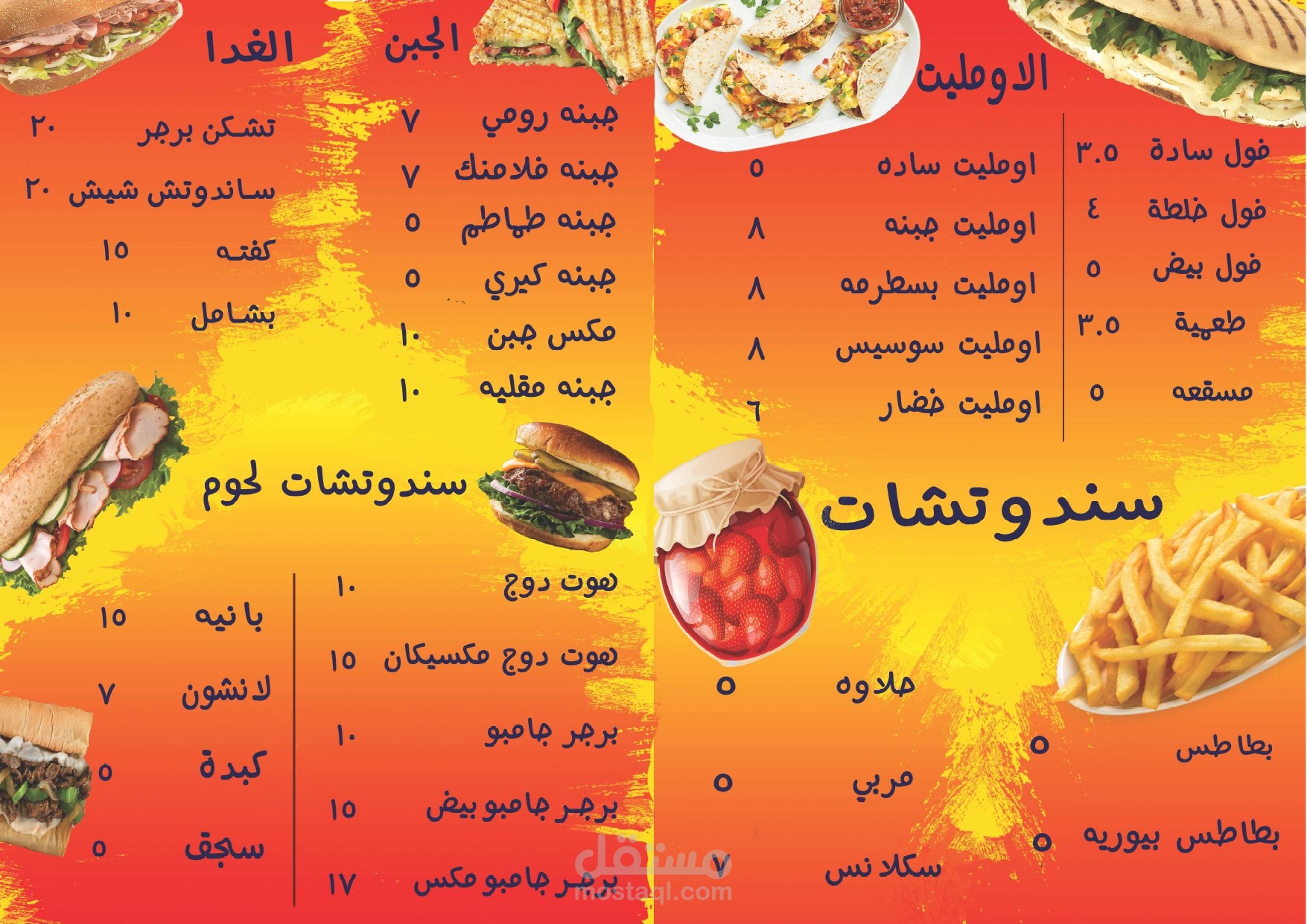 منيو مطعم صغير