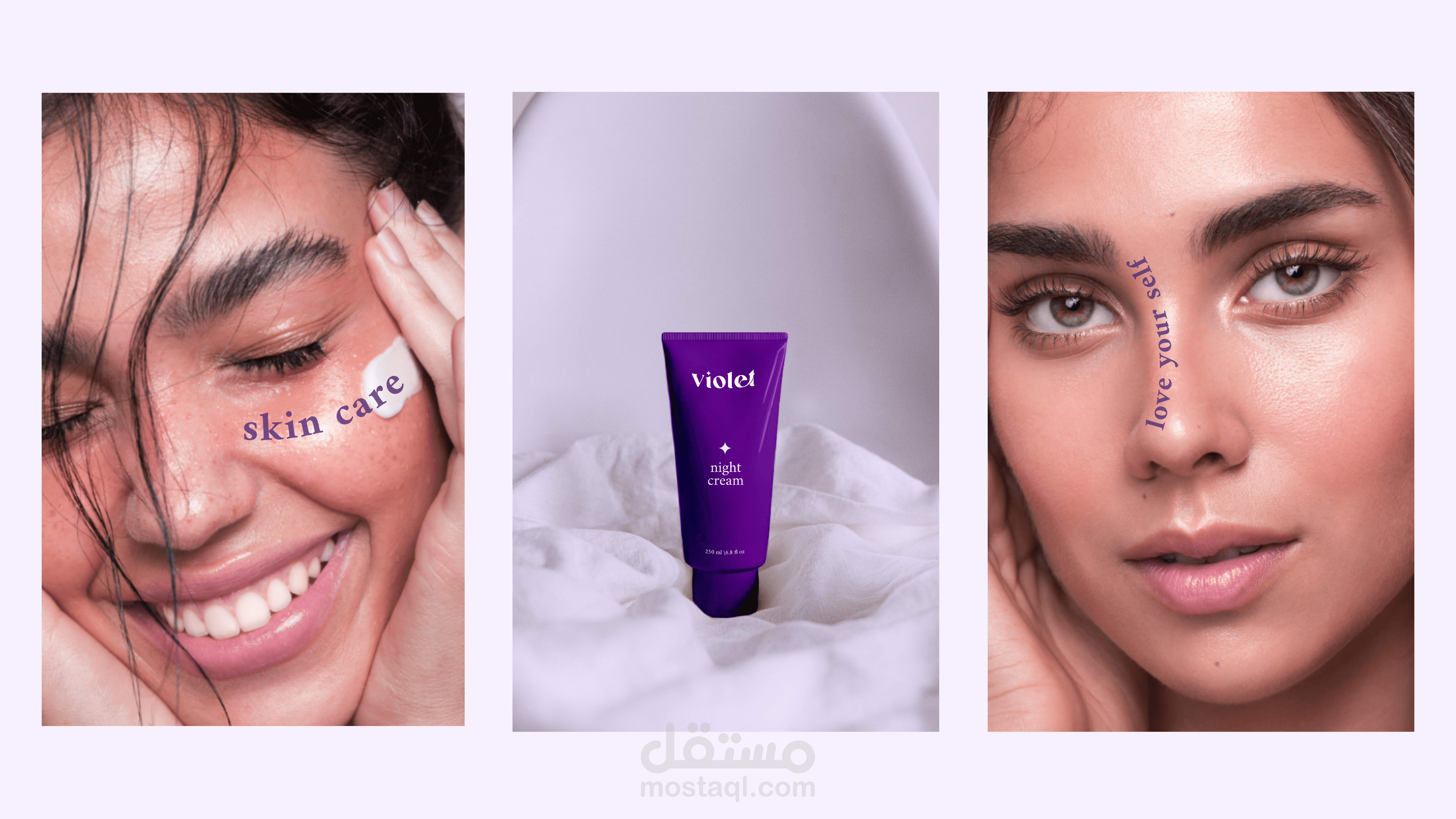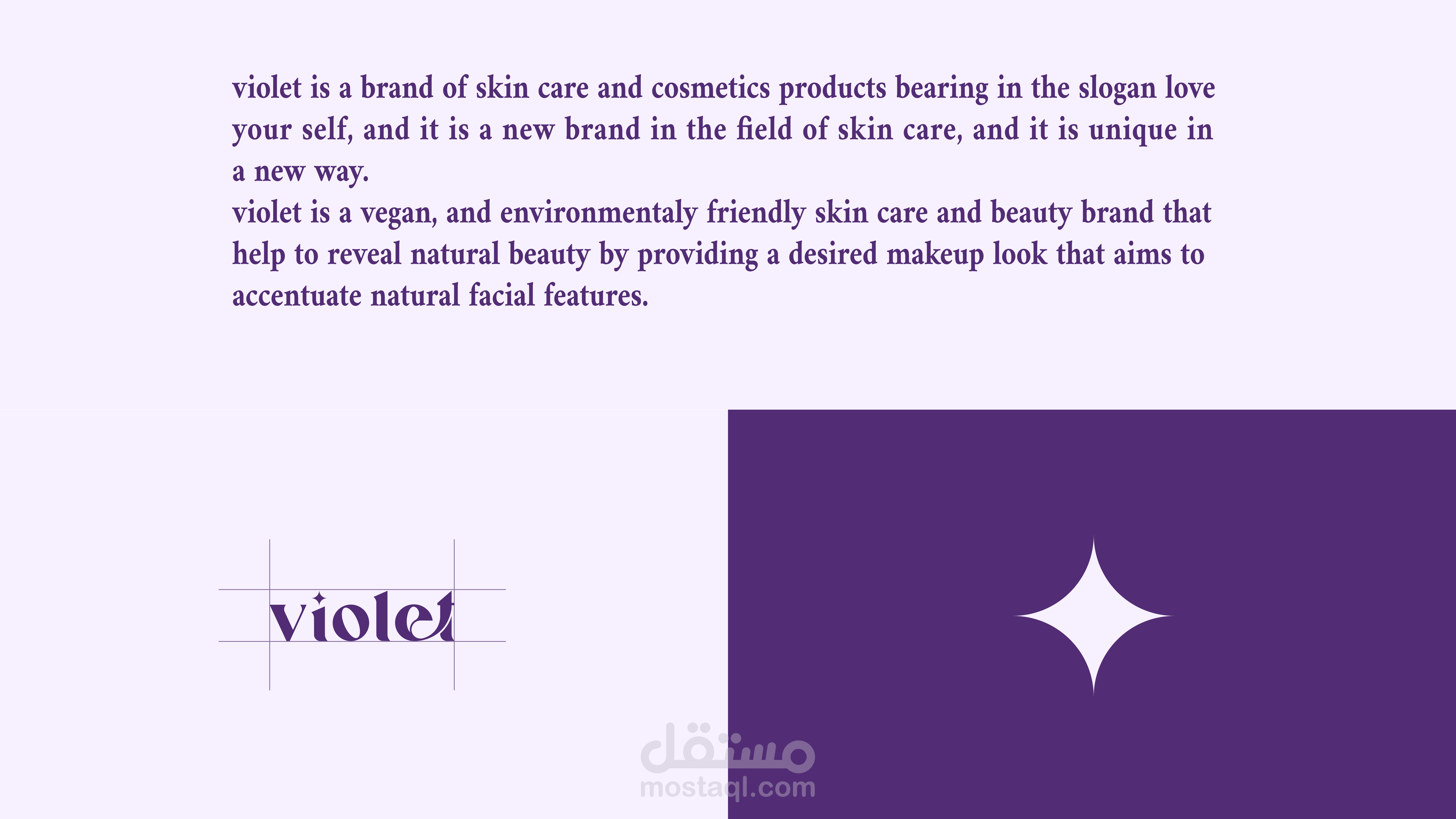 violet is a brand of skin care and cosmetics products bearing in the slogan love your self, and it is a new branding the field of skin care, and it is uniqe in a new way