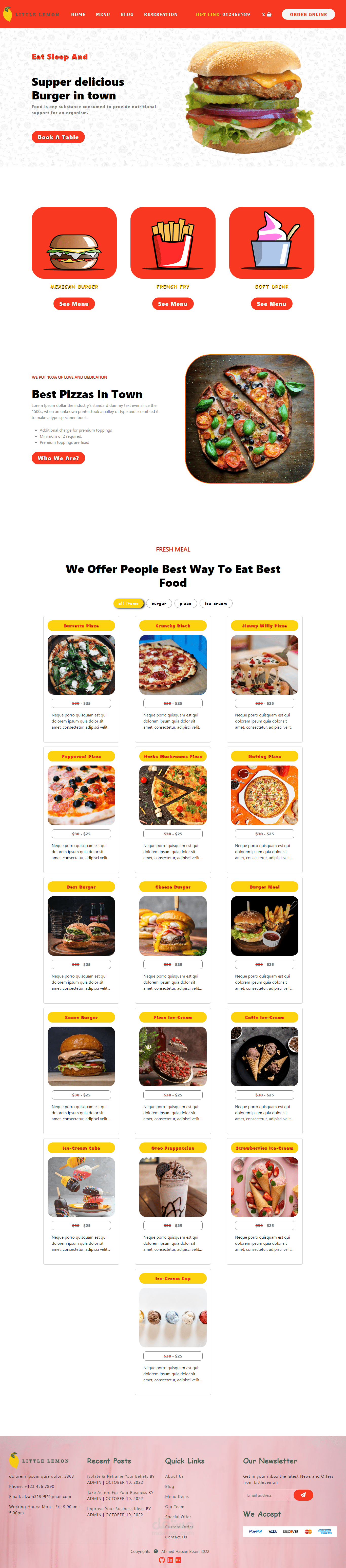 صفحة هبوط لمطعم Landing Page