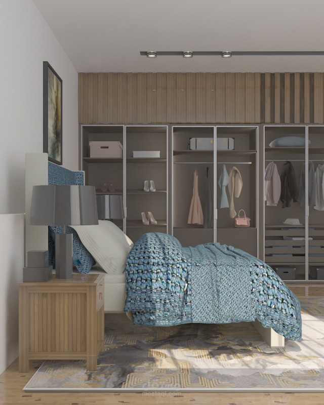 تصميم غرفة نوم مع مراعاه استخدام الوان هادئة