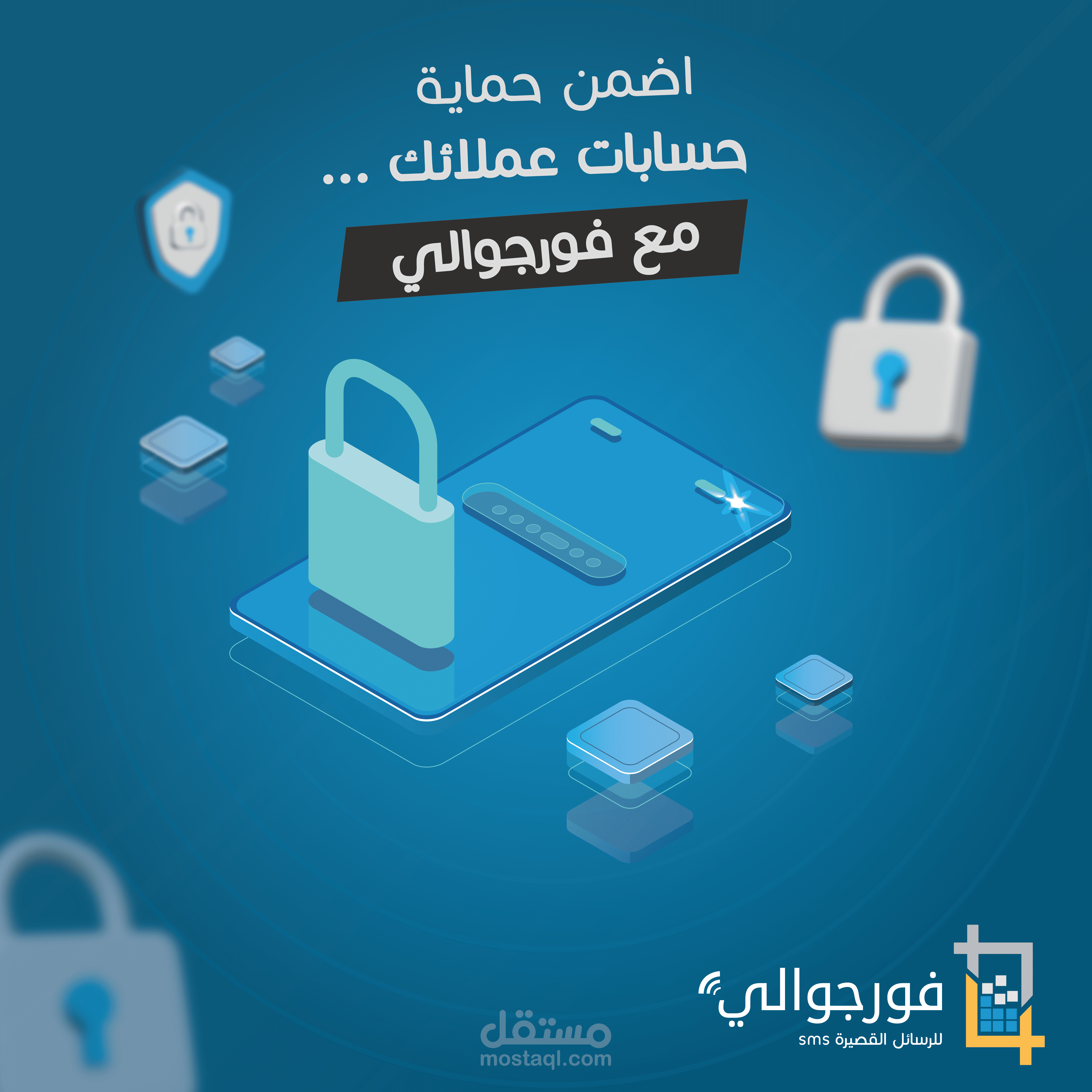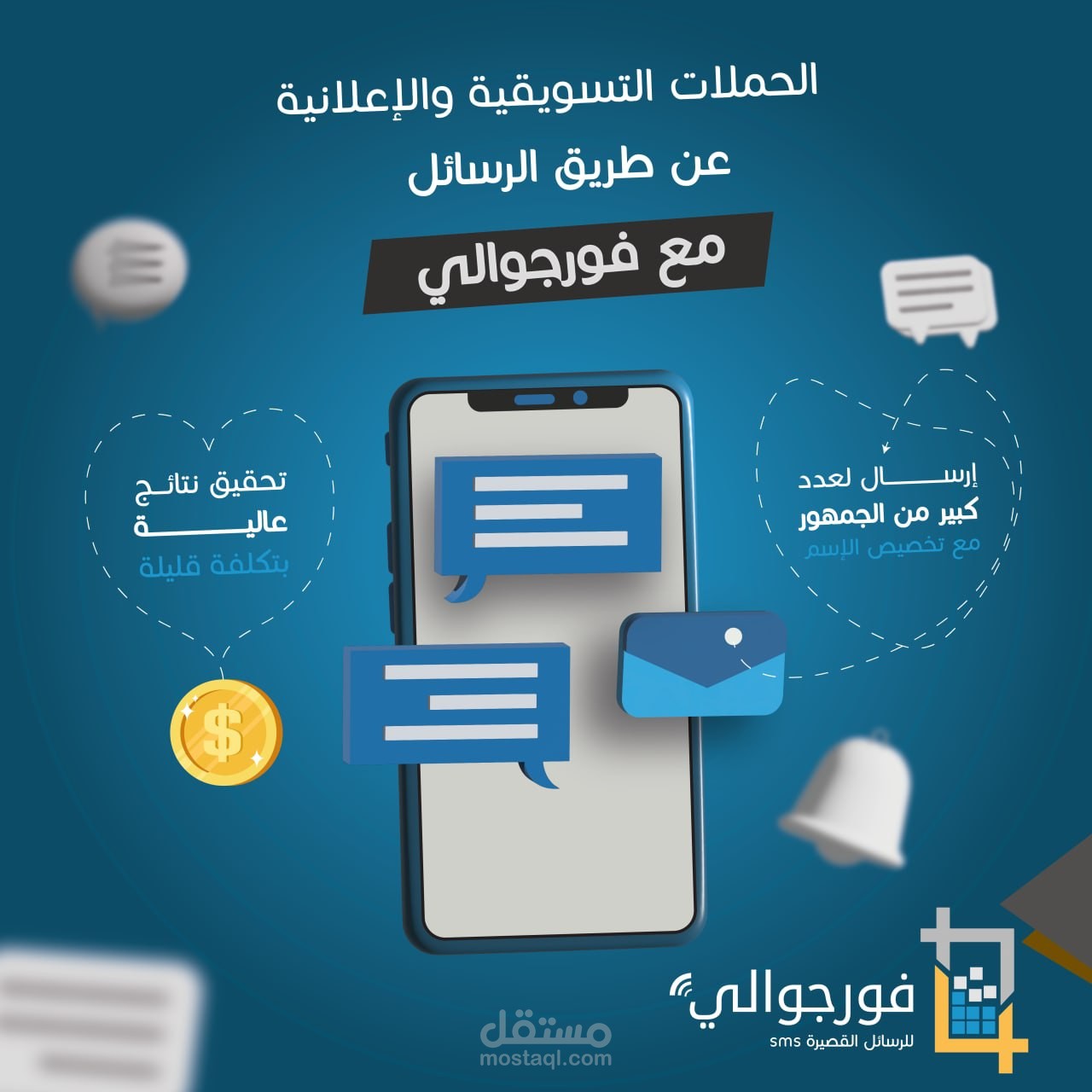 تصميم سوشيال ميديا احترافي لفريق فورجوالي لخدمات الرسائل النصية