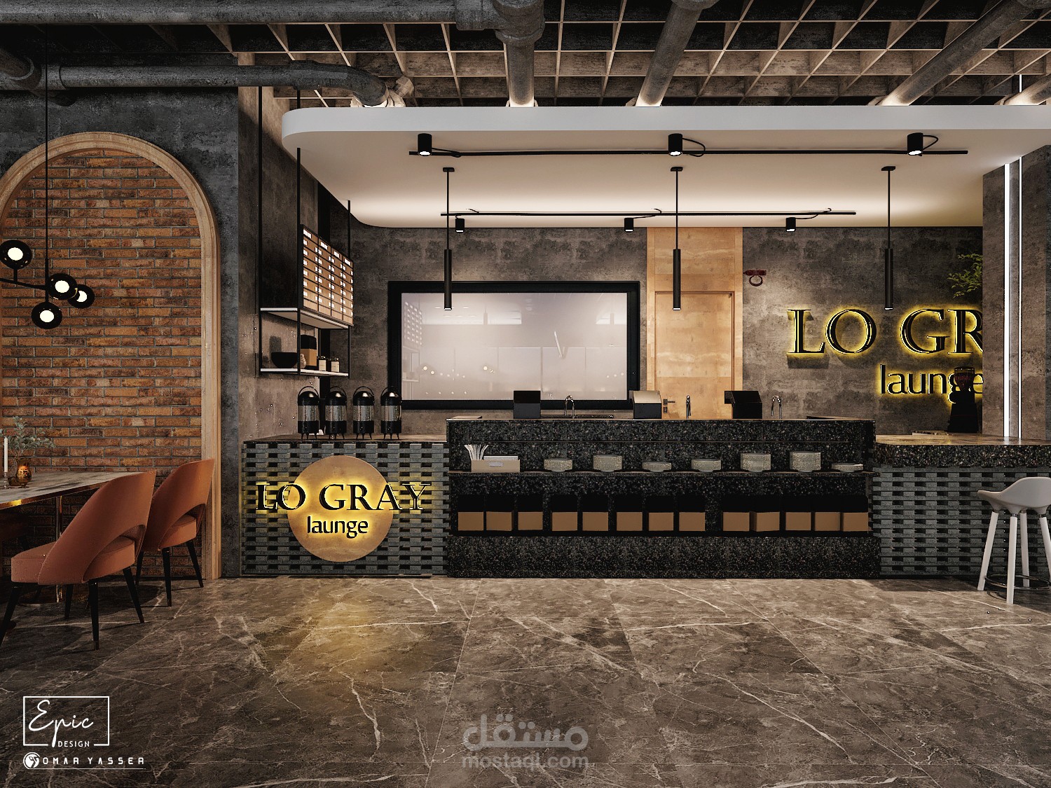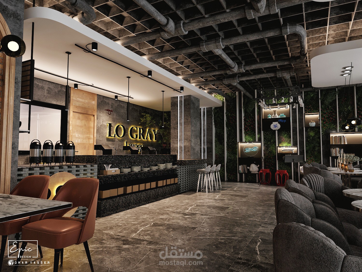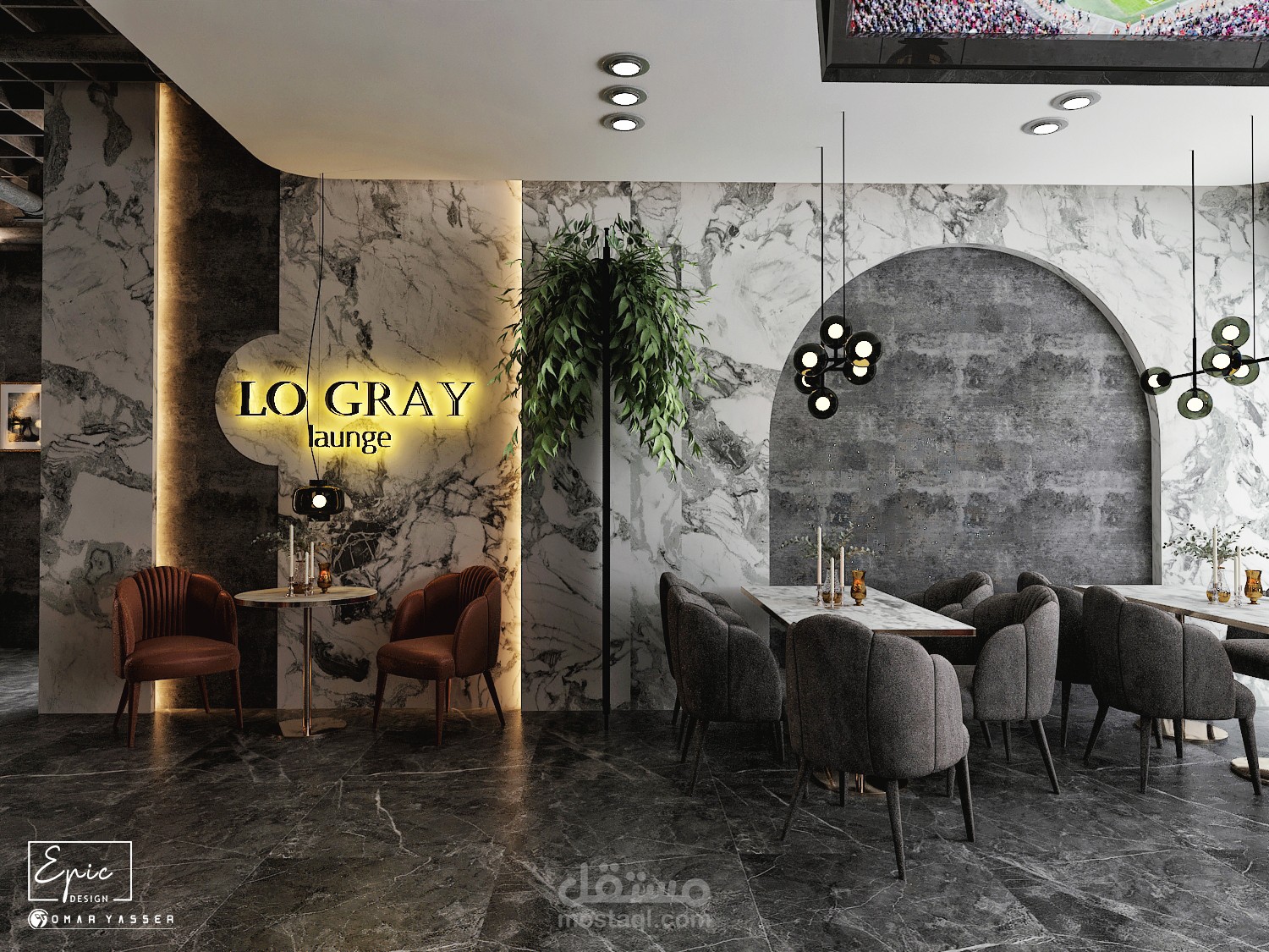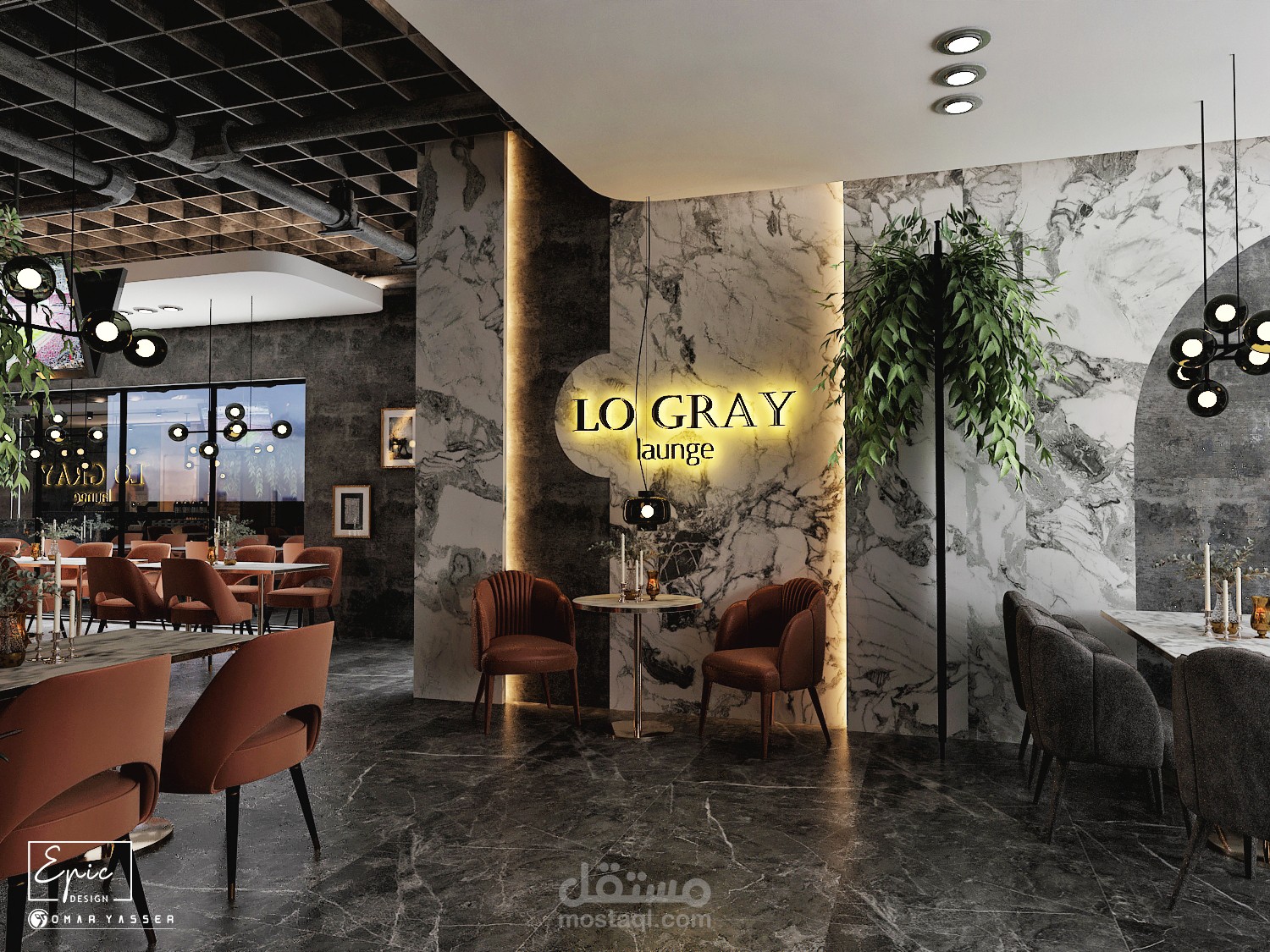 تصميم مودرن لمطعم وكافيه LO GRAY Lounge