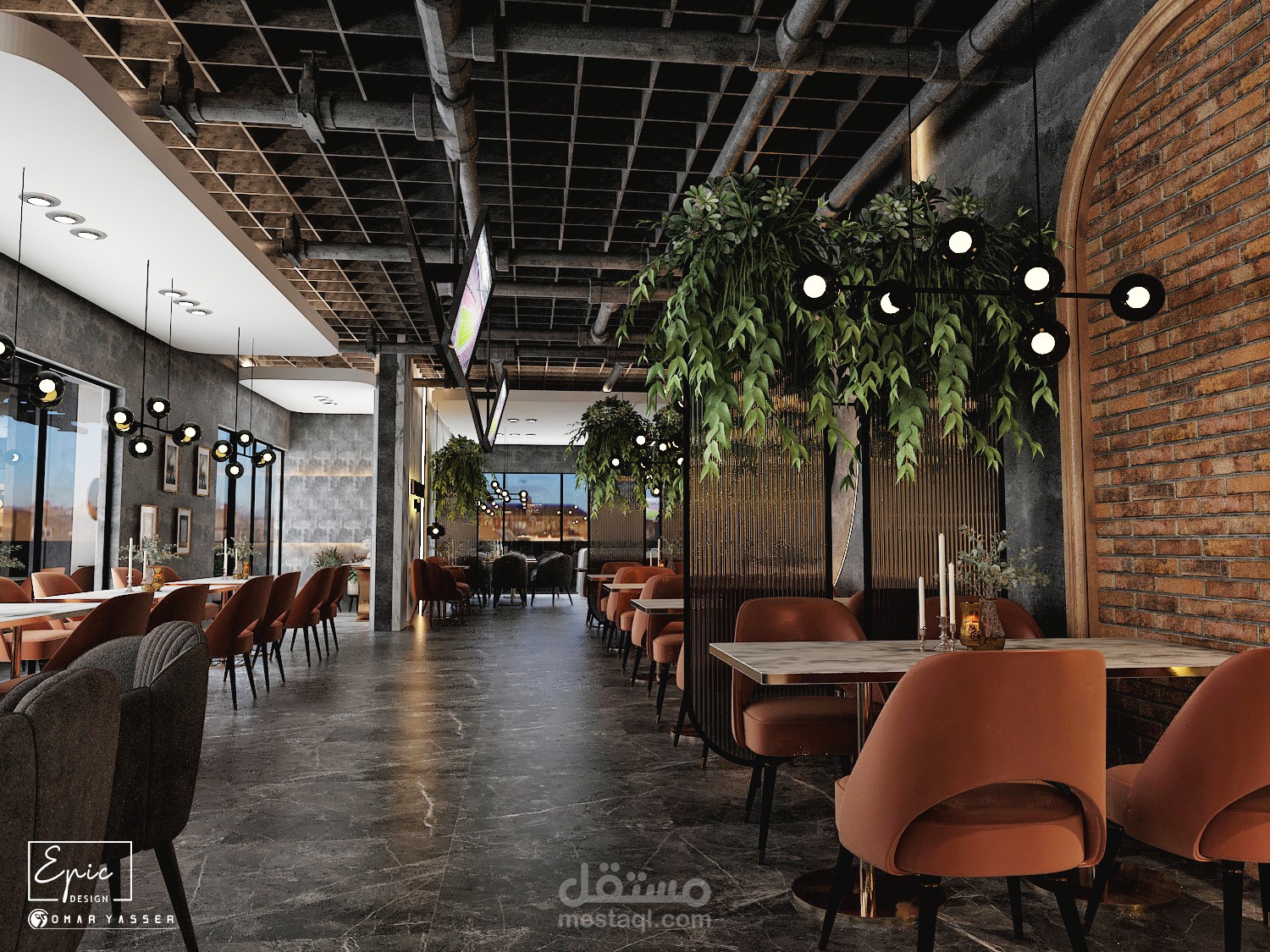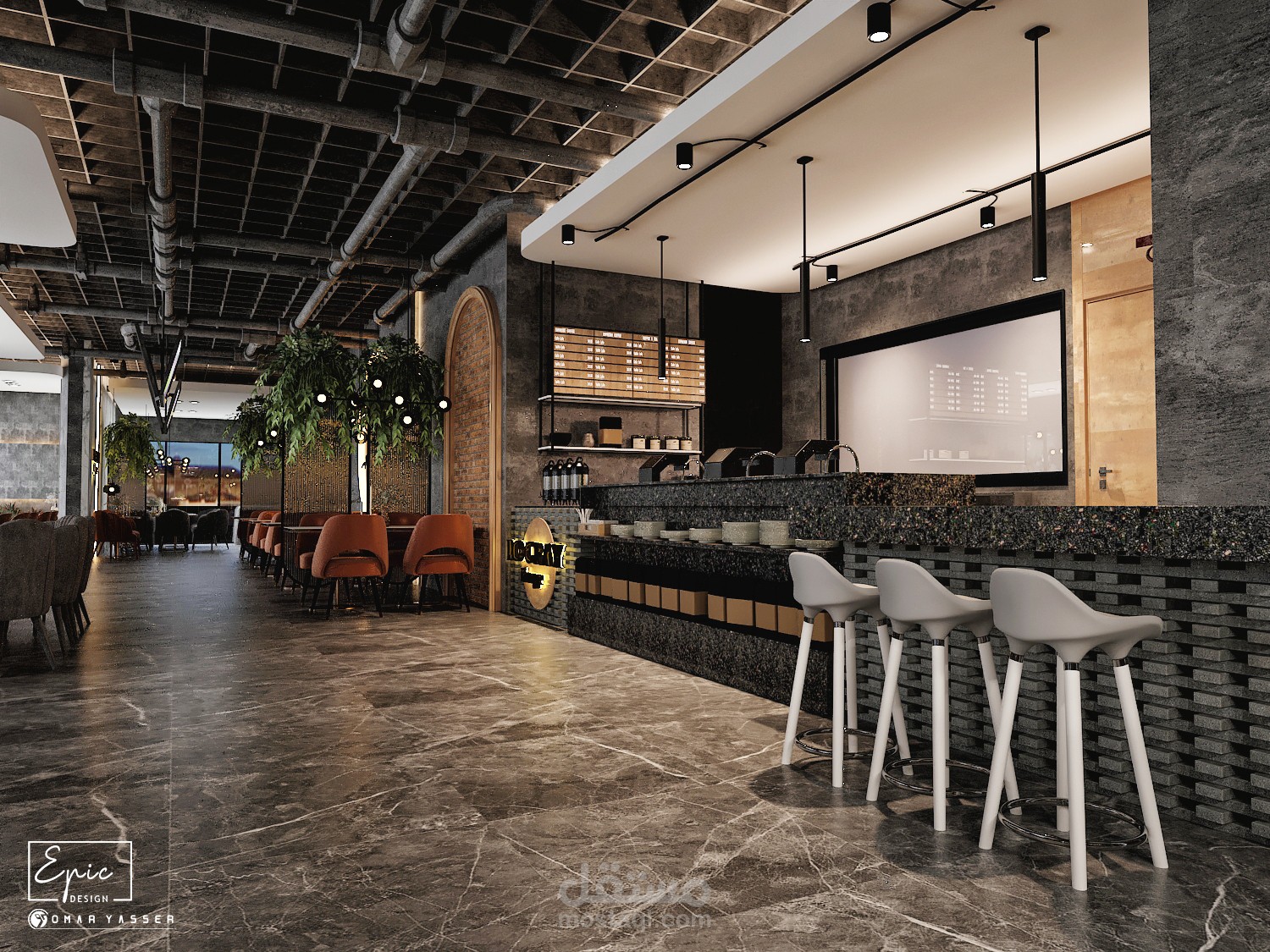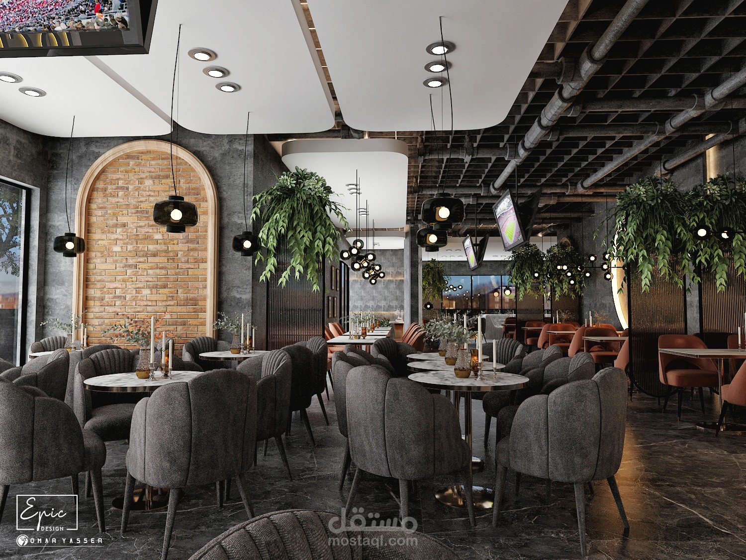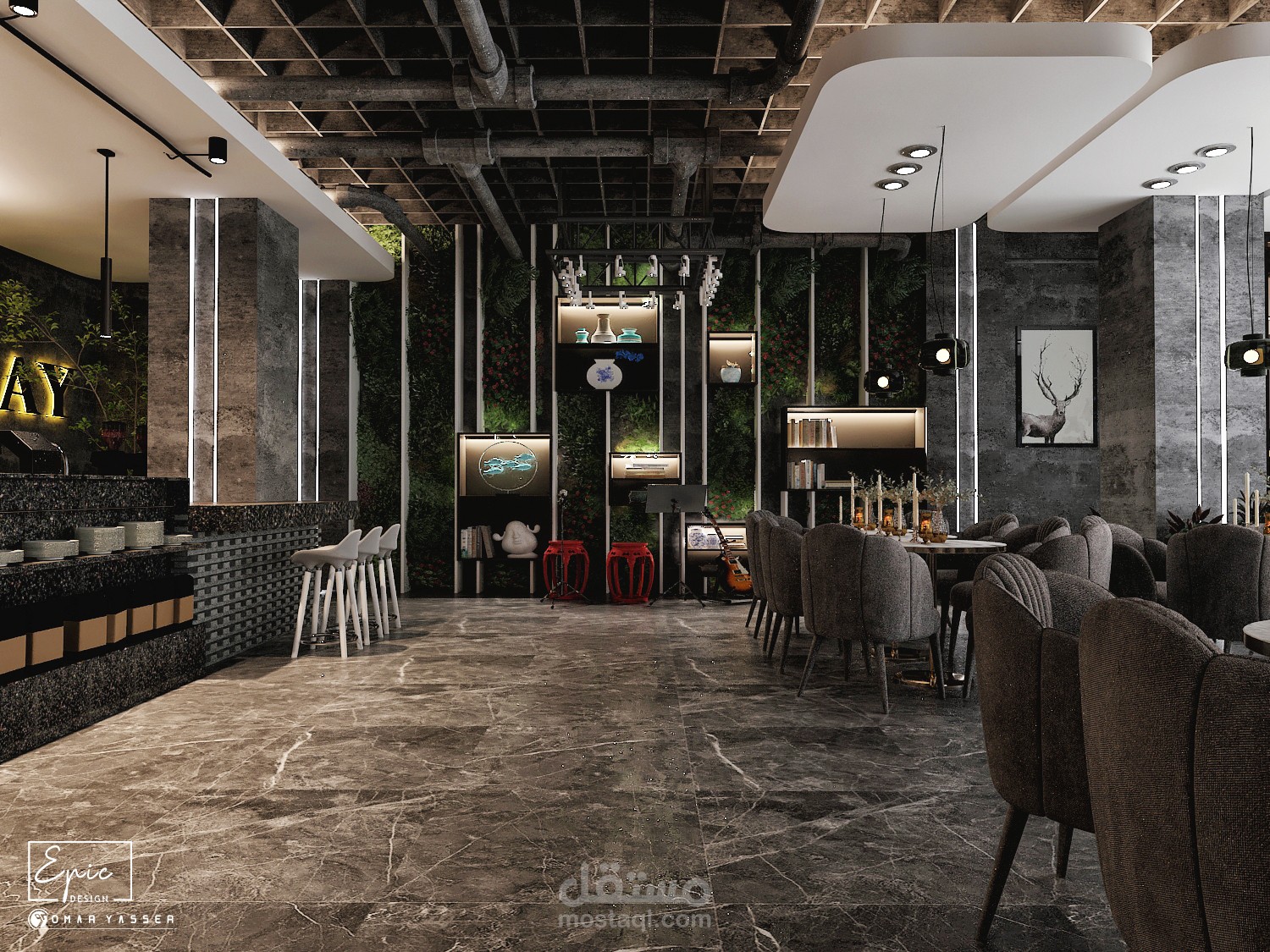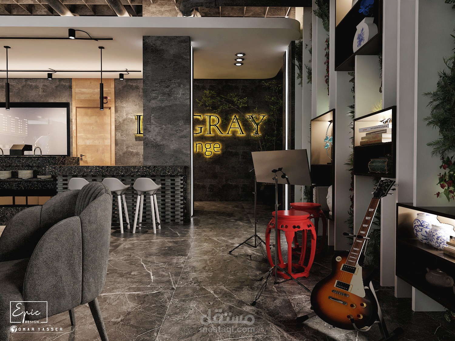 تصميم مودرن لمطعم وكافيه LO GRAY Lounge