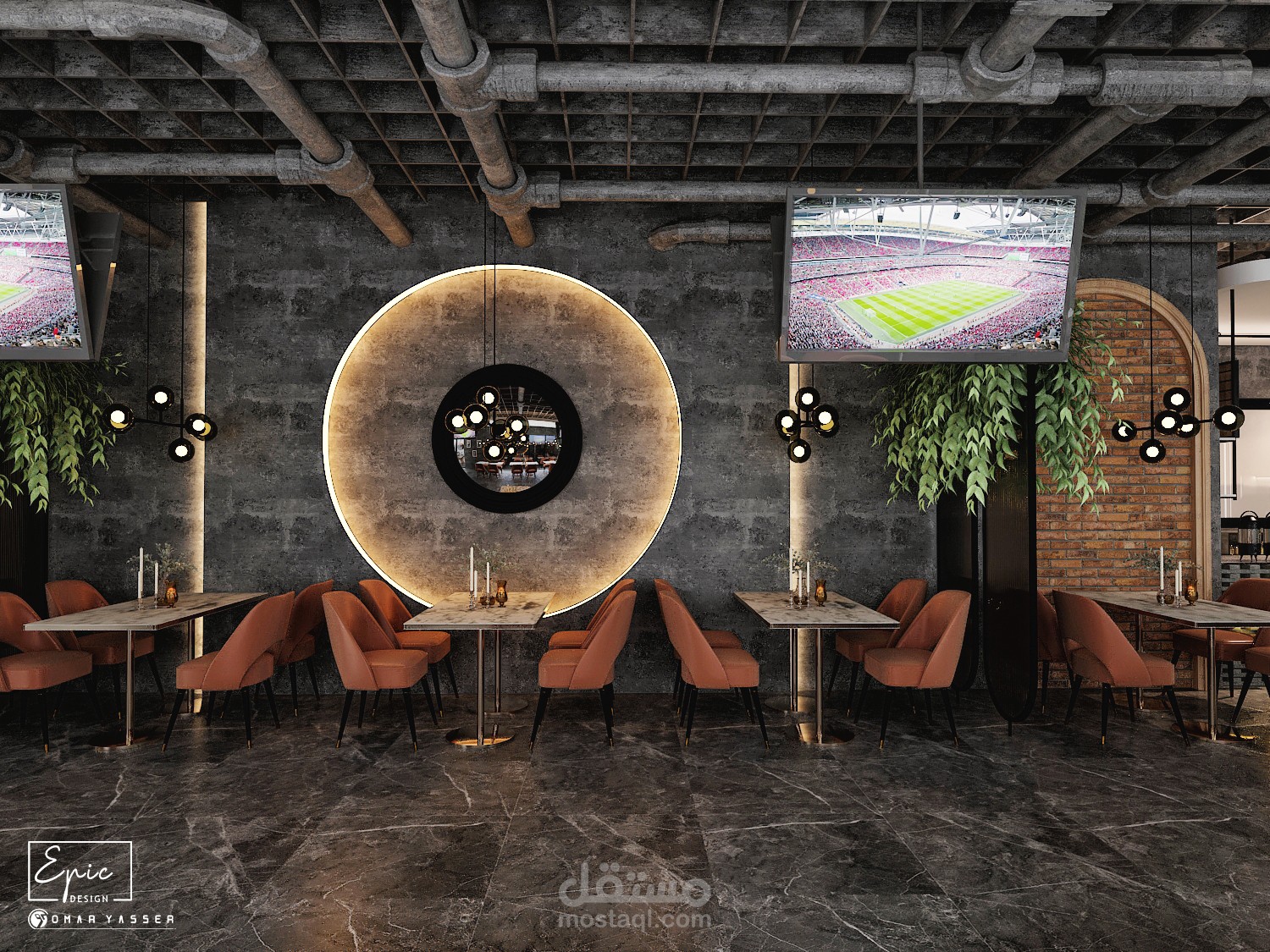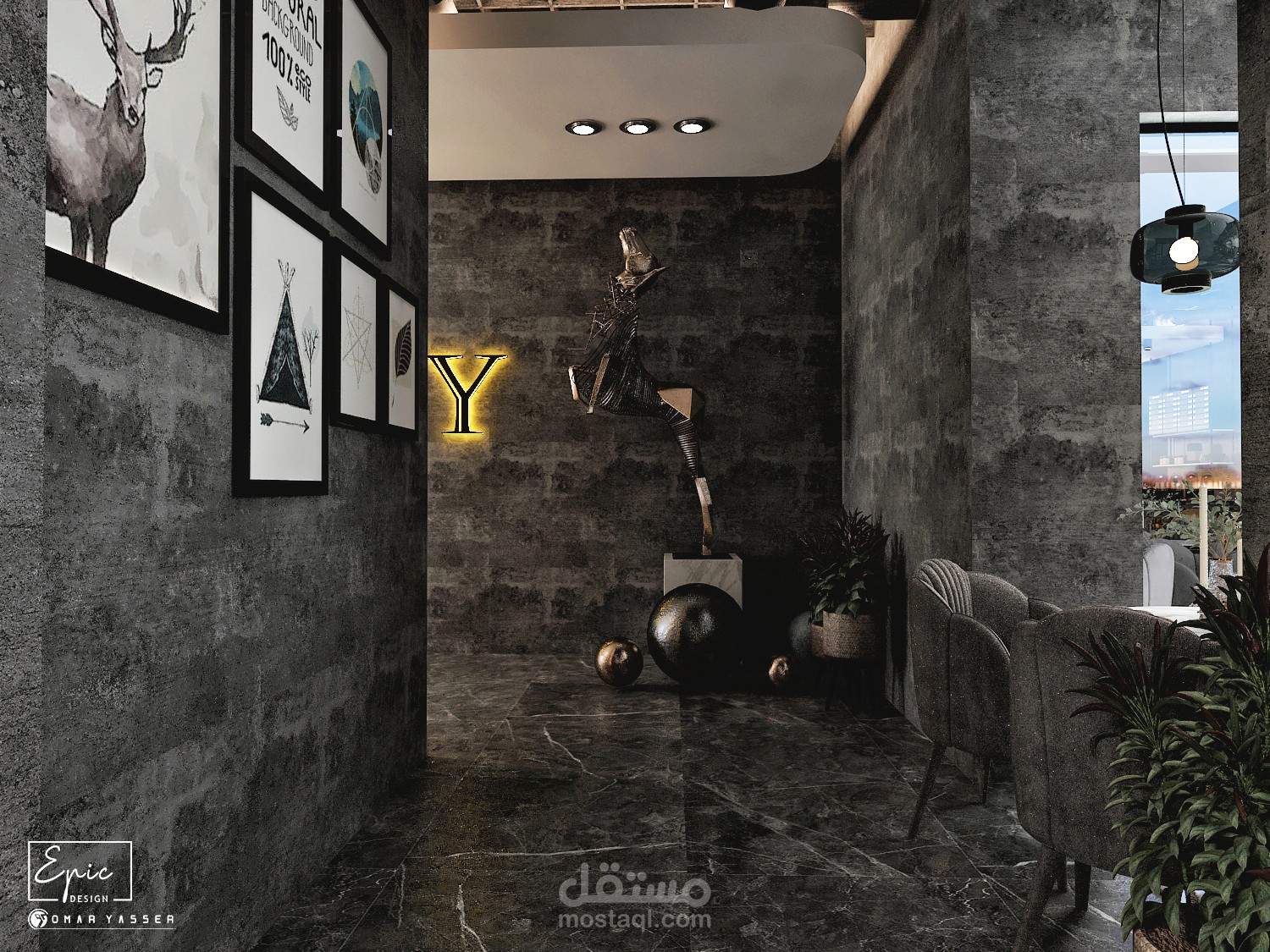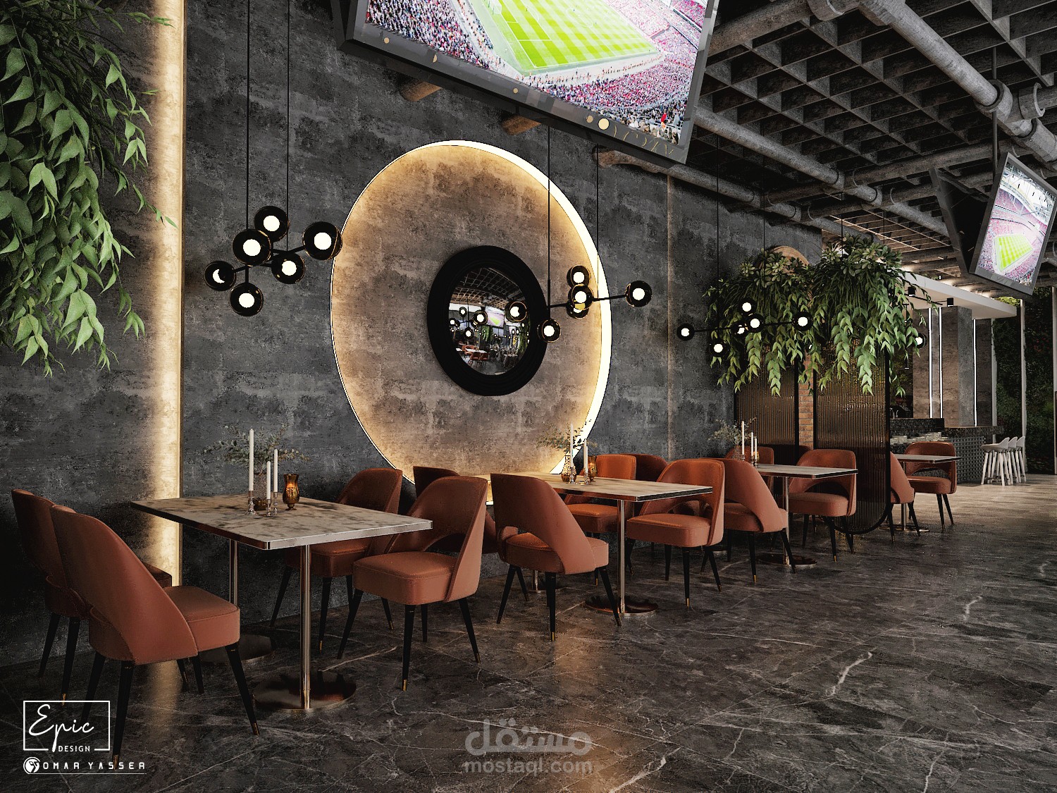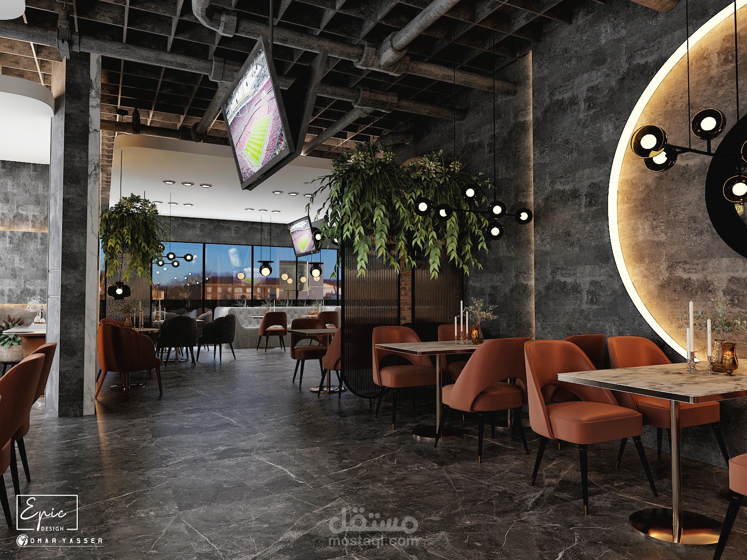 تصميم مودرن لمطعم وكافيه LO GRAY Lounge