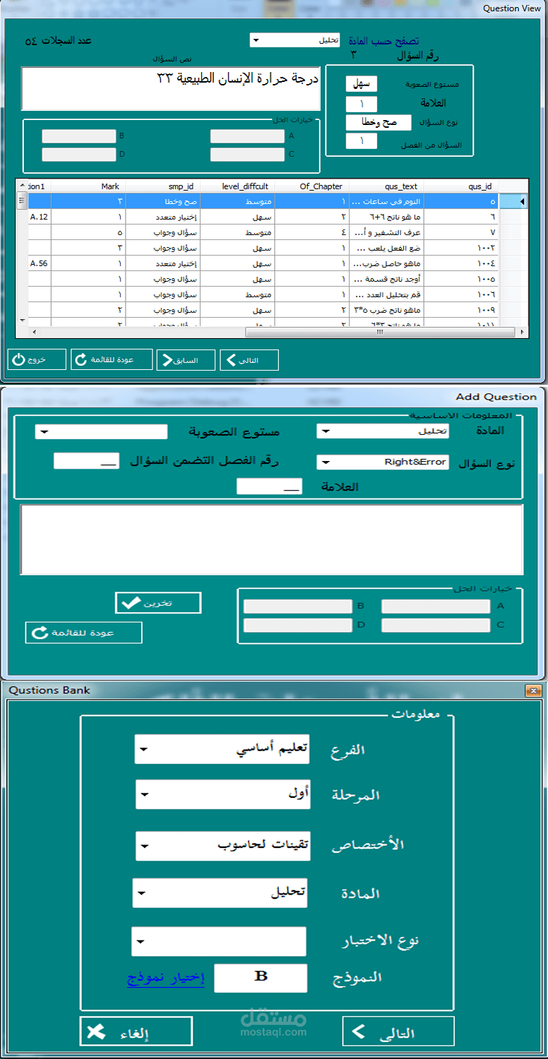 برنامج لتوليد نماذج أختبارات بشكل آلية عن طريق اسئلة مدخل من قبل استاذة المواد