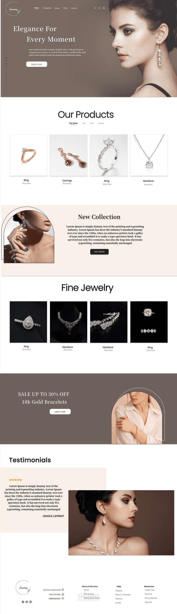 موقع الكتروني يعرض المجوهرات بكافة انواعها