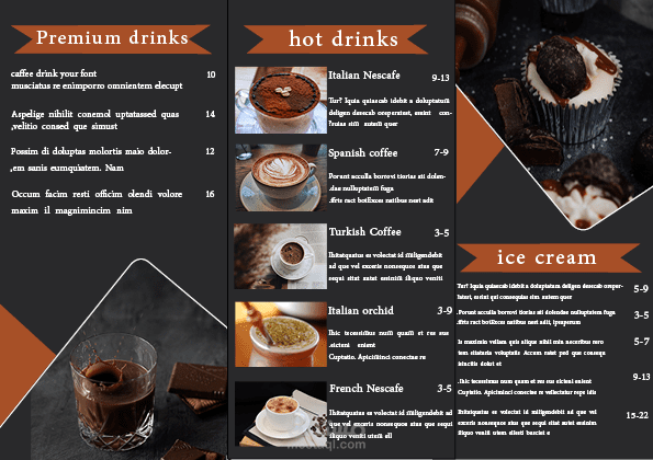 بروشور للمقاهي من تصميمي الخاص ويمكنني تصميم أي نموذج ترغبه