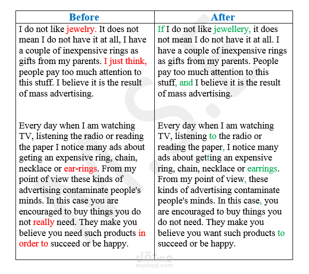 - إعادة الصياغة الجمل الركيكة.