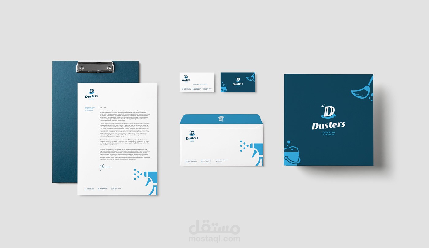 Dusters cleaning services is based in the heart of Amman to supply local companies with superior cleaning services. Dusters use high end products and advanced cleaning equipment to give the best possible cleaning service, and brandelicious was responsible of creating a simple yet attractive brand to reflect the company’s mission and vision.