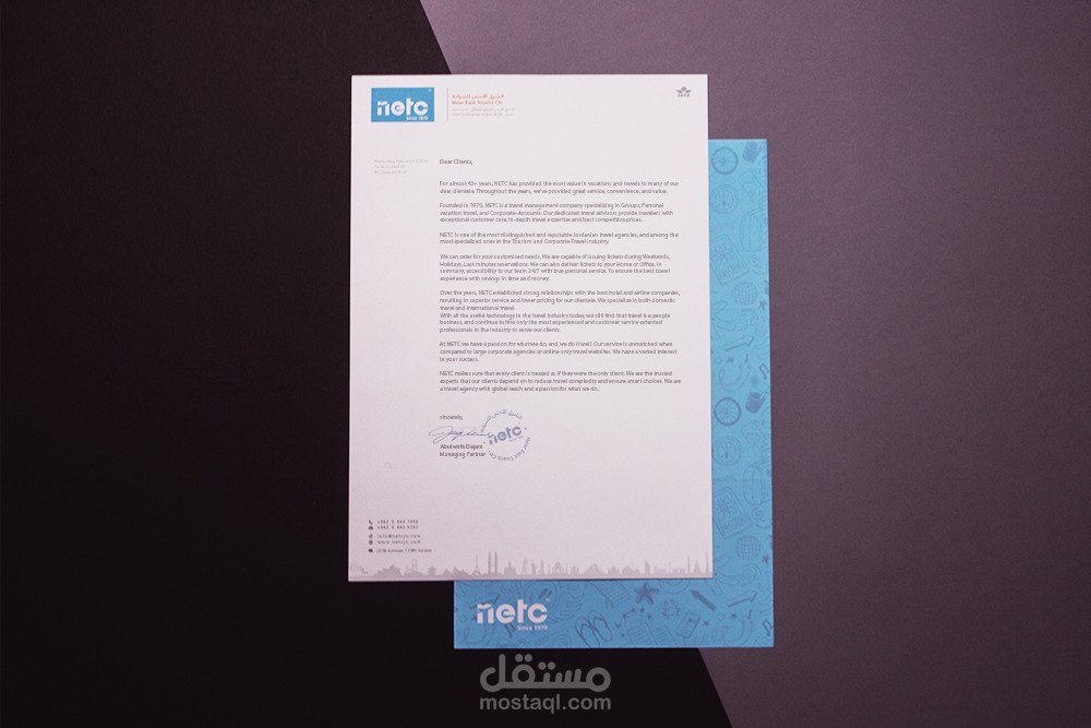 A complete rebranding for NETC, a travel company established in 1970. NETC is one of the most distinguished and reputable Jordanian travel agencies, and among the most specialized ones in the Tourism and Corporate-Travel industry.