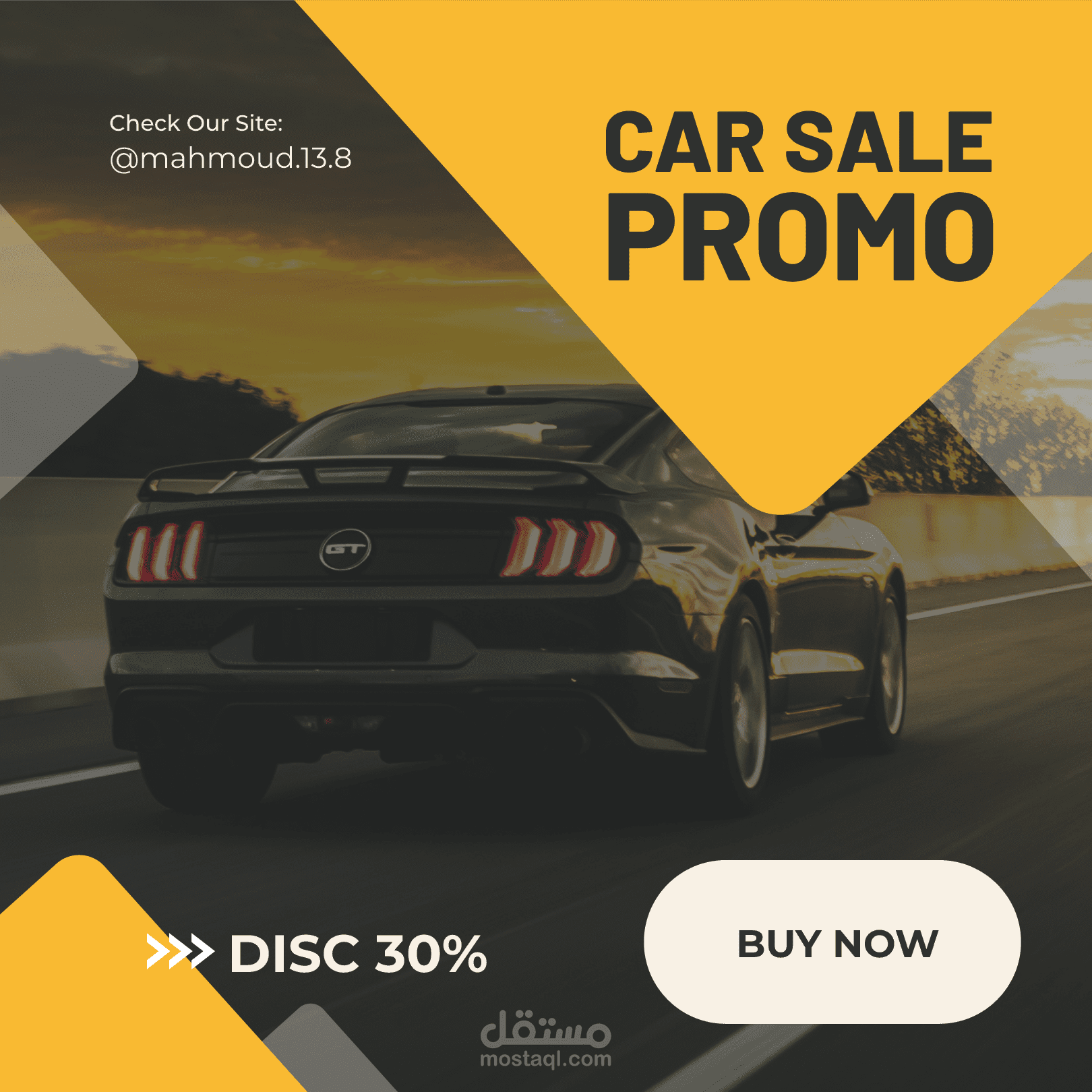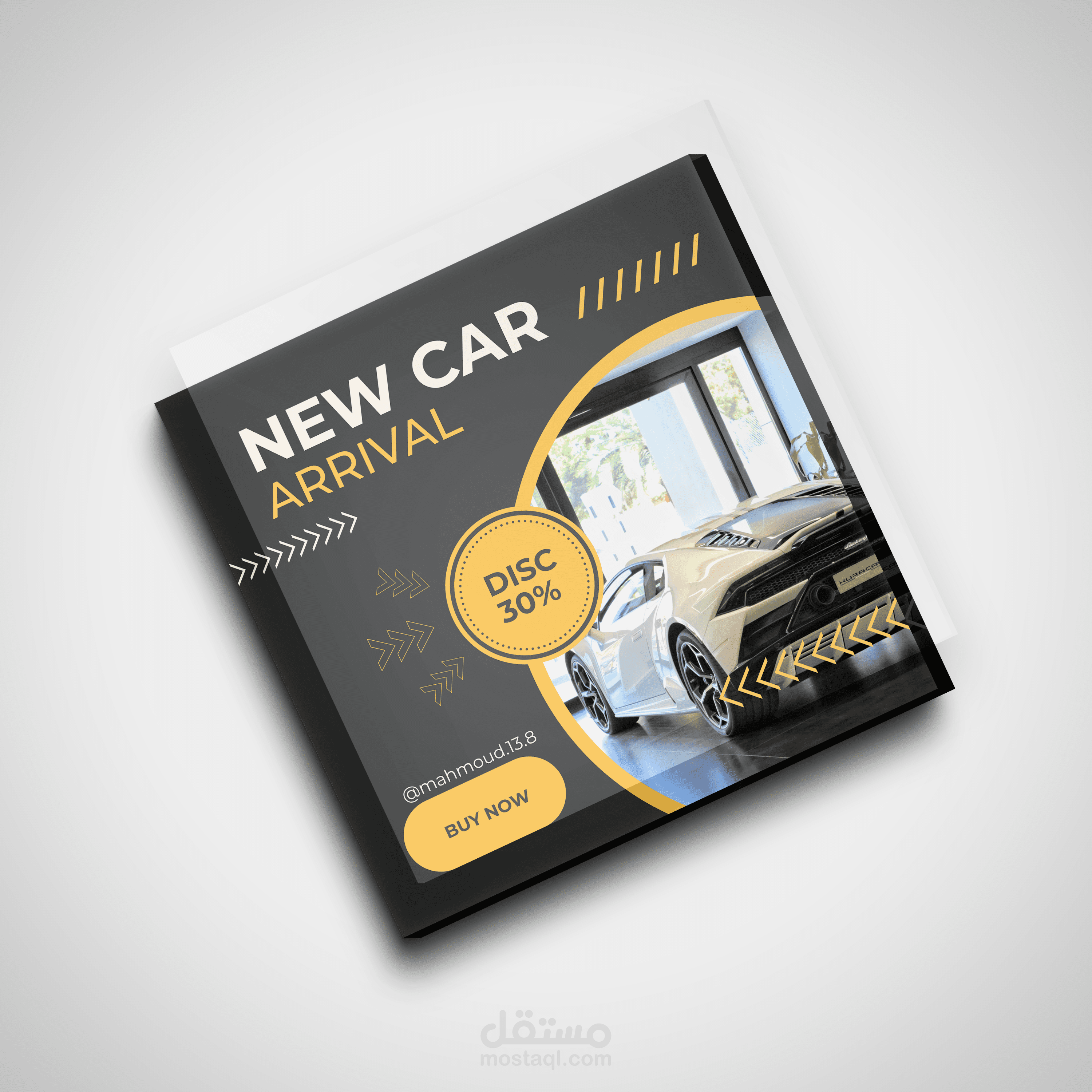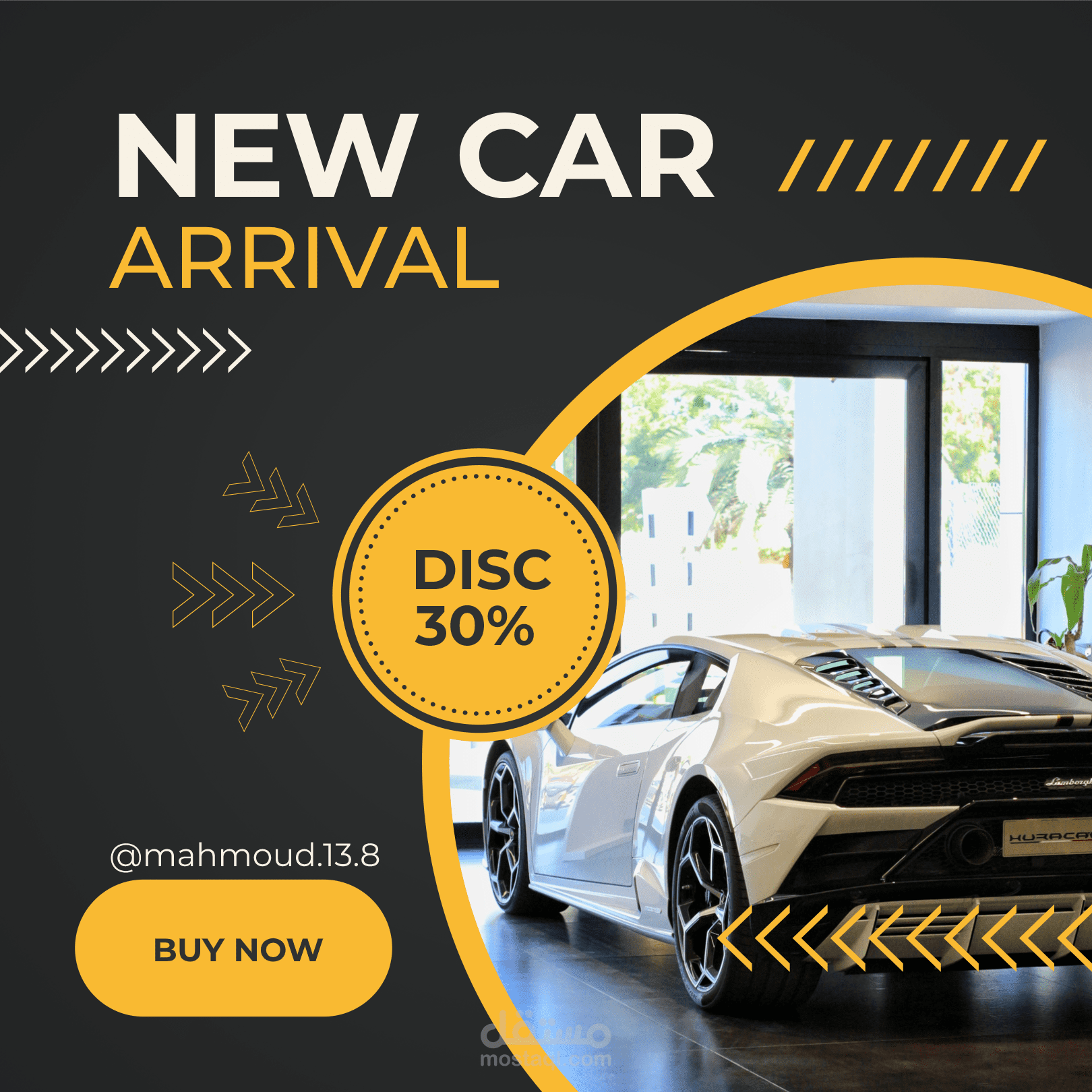 تم تصميم بوستر من خلال تفريغ صورة سيارة و وتنسيق النص مع الصورة و ادراج خلفية لونية مع بعض الأشكال و تنسيق الأبعاد و المسافات