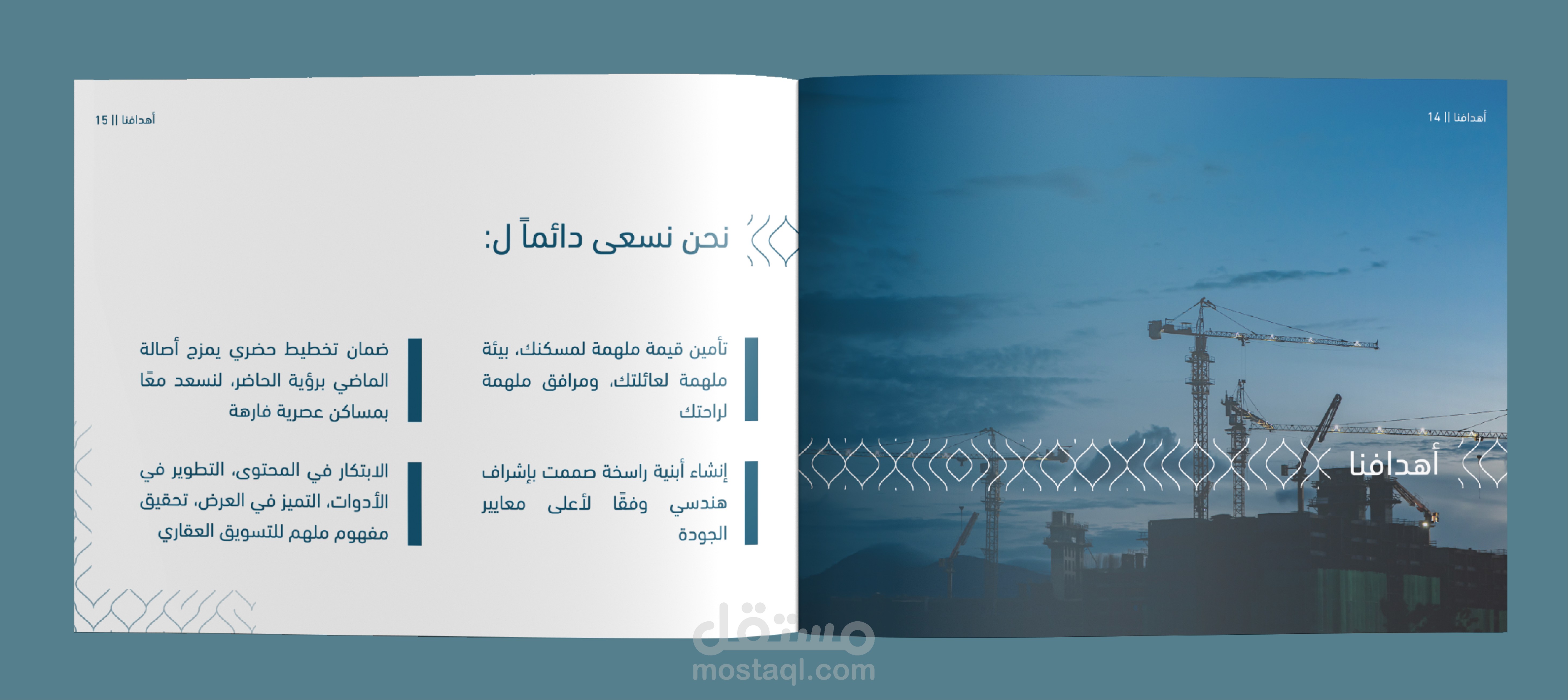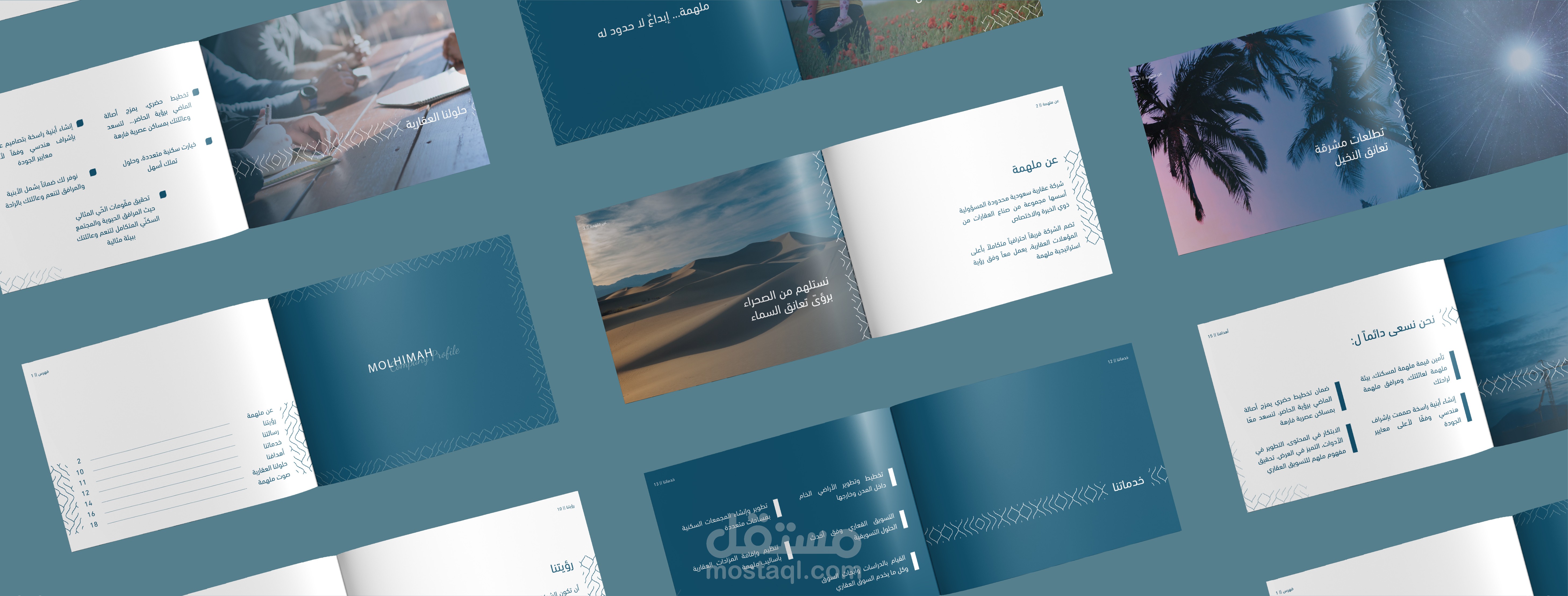 الكتيب متوازن للغاية حيث استخدمنا أنظمة الشبكة لمحاذاة كل شيء في الكتيب. مع وجود رسائل رئيسية واضحة جدًا على كل صفحة، مما يسهل اكتشاف المزيد عن الشركة.