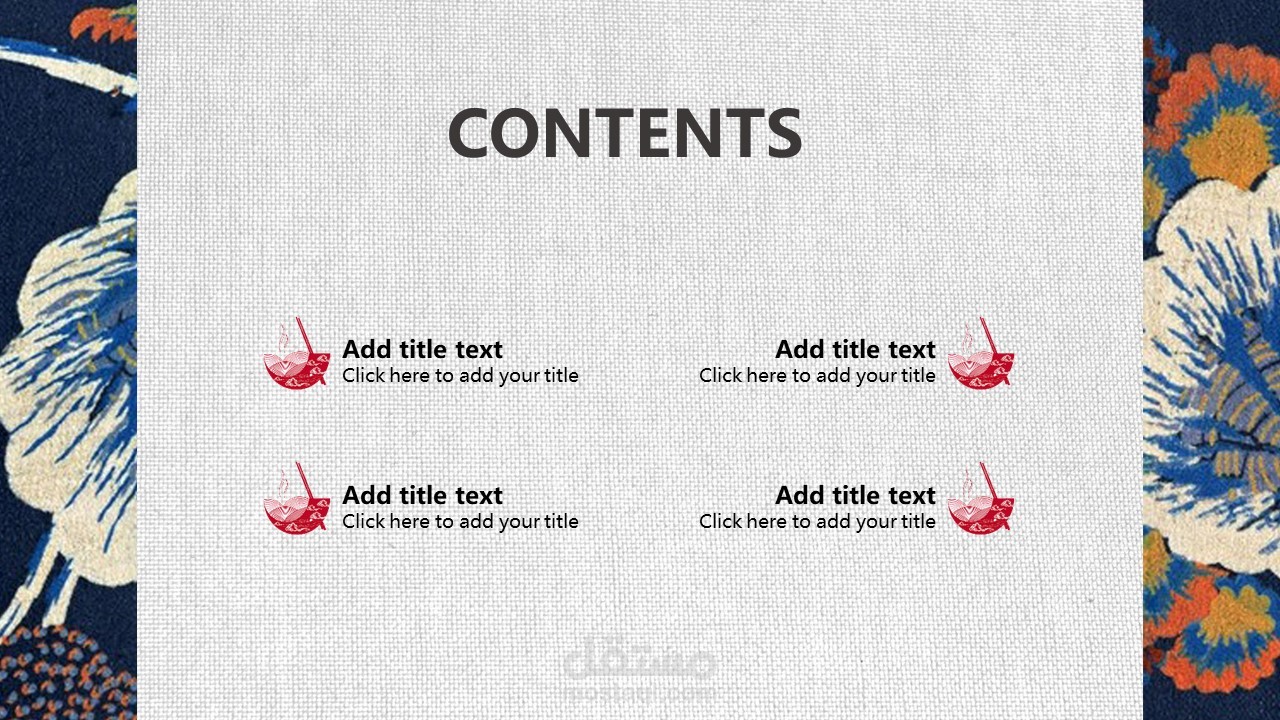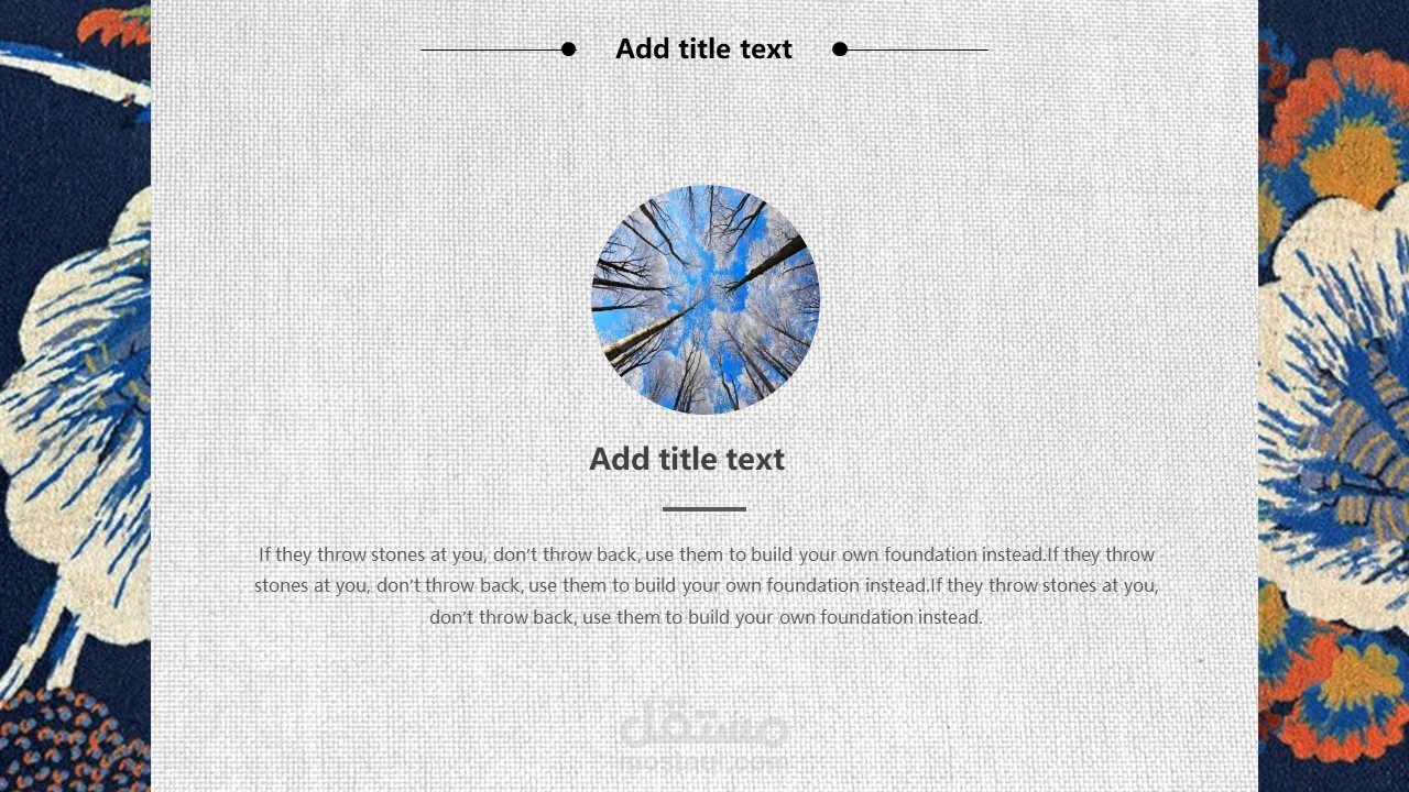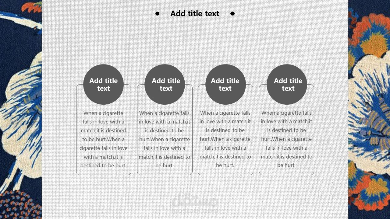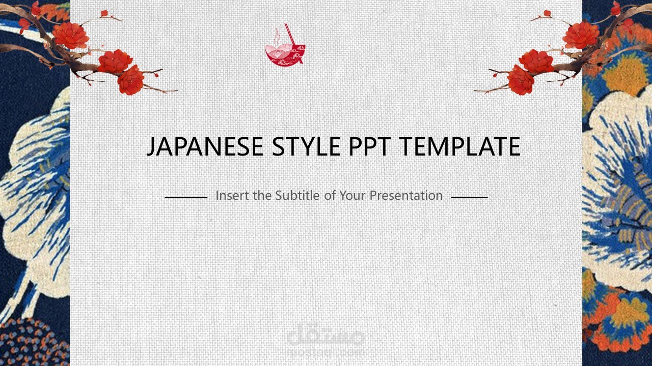 The cover of PPT template uses the background picture of retro Japanese flowers. Fill in the PPT title text in the middle of the page. The interface style is simple and simple.