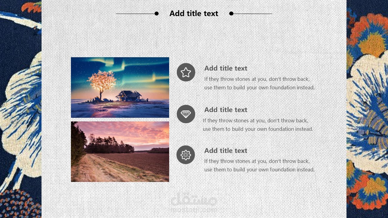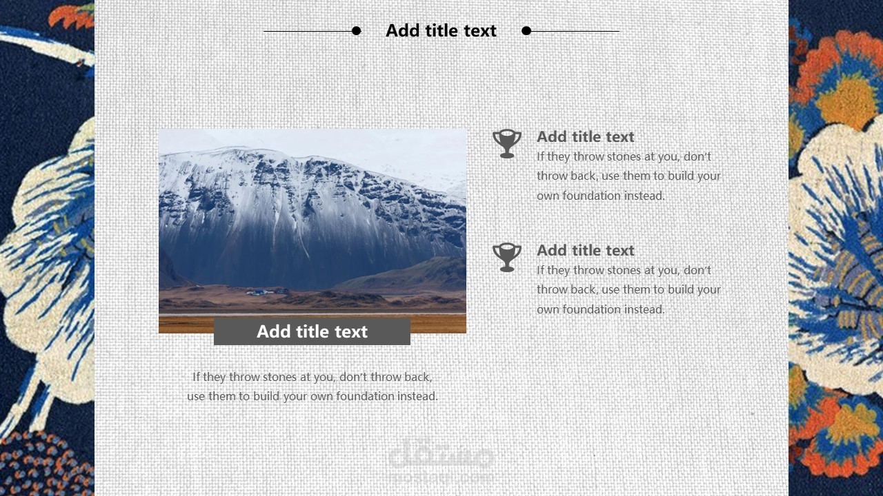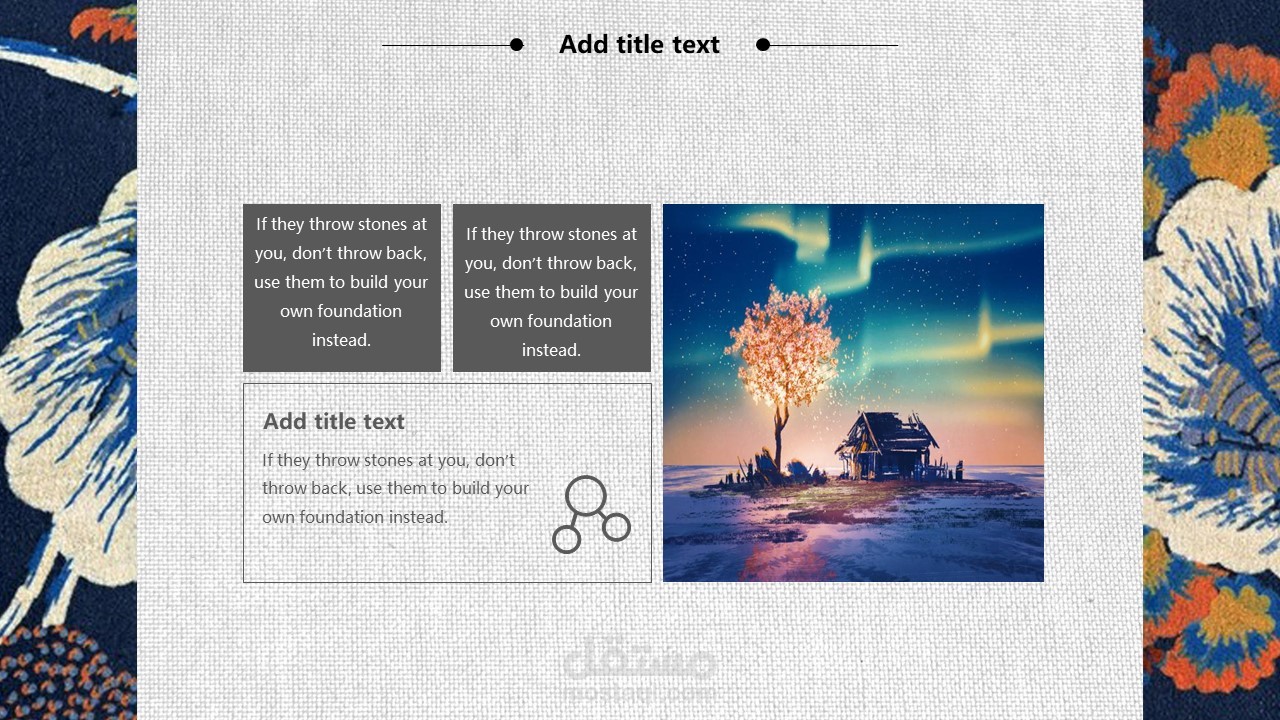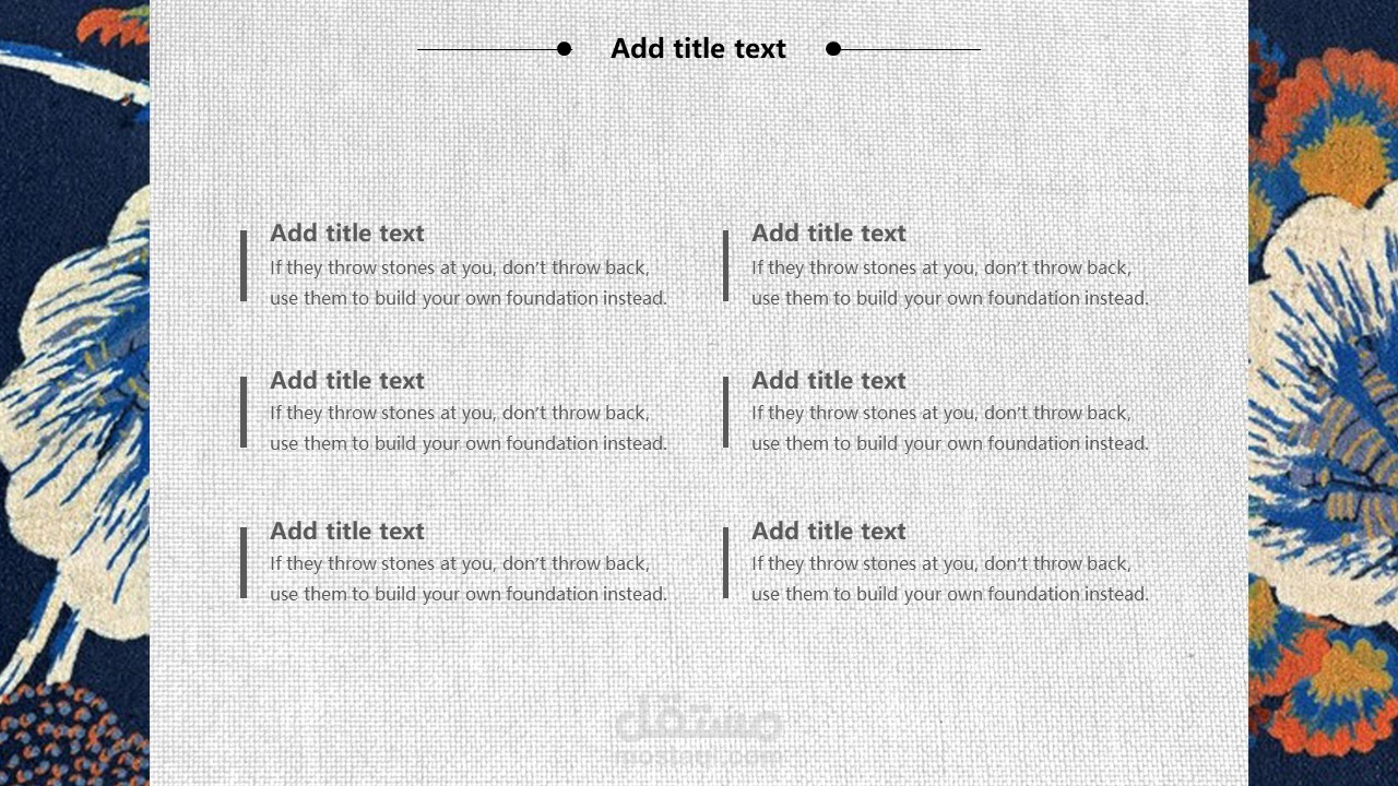 The cover of PPT template uses the background picture of retro Japanese flowers. Fill in the PPT title text in the middle of the page. The interface style is simple and simple.