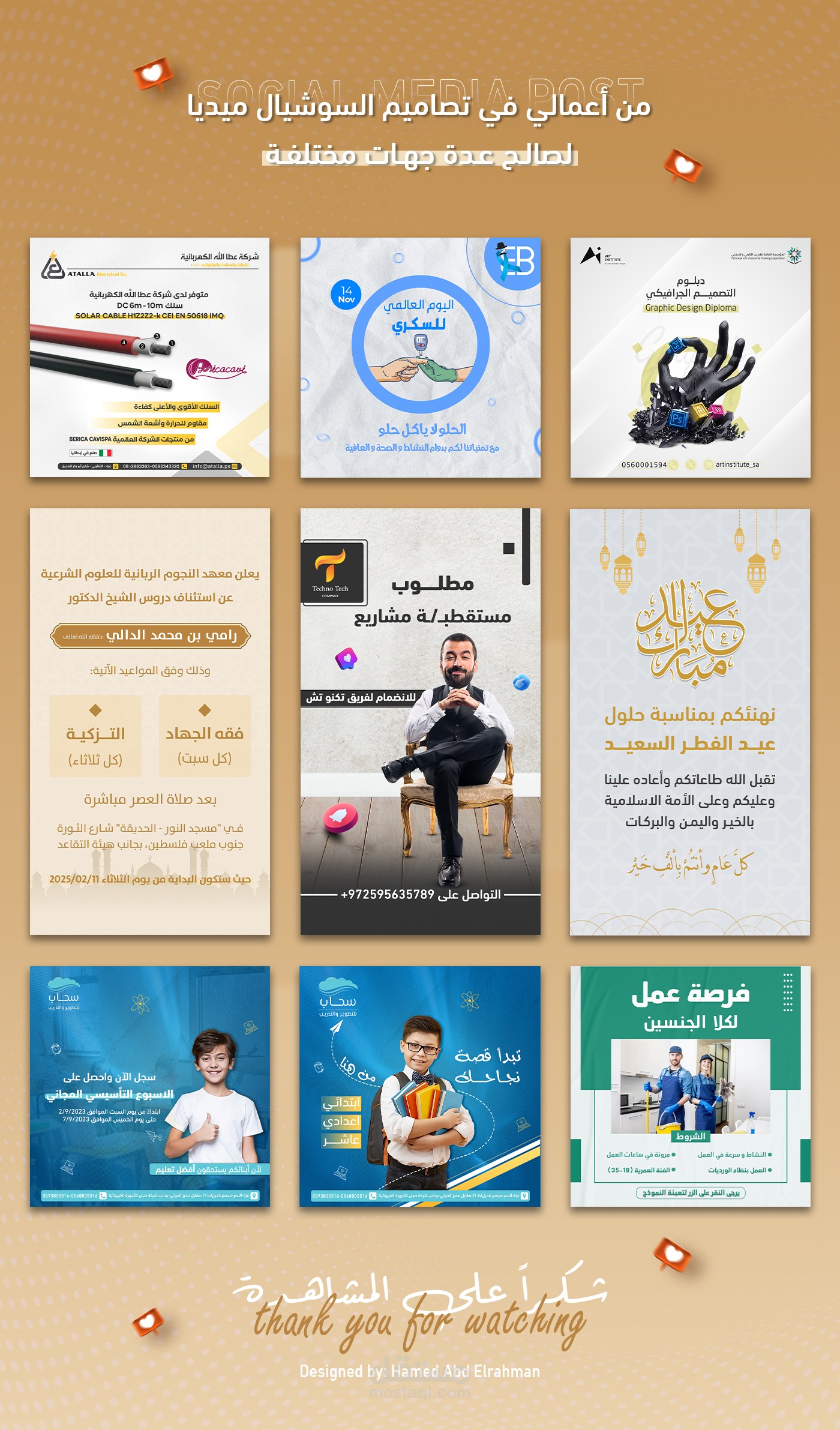 تصاميم سوشيال ميديا منوعة - فيسبوك ، انستقرام - باستخدام الفوتوشوب والاليستريتور لصالح عدة جهات.