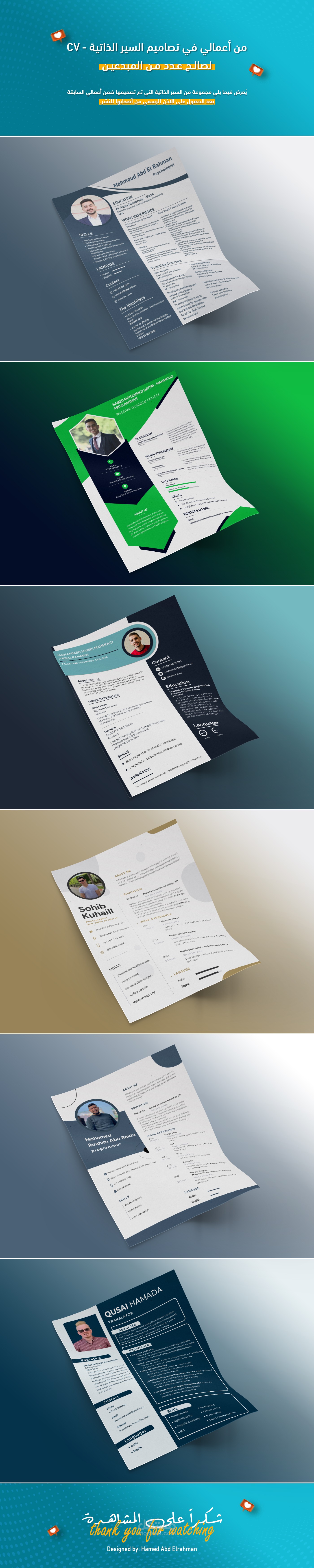 تصميم سير ذاتية cv ابداعية باستخدام الفوتوشوب والاليستريتور لصالح عدة عملاء لاستخدامها في اعمالهم وتقديمها في الوظائف.