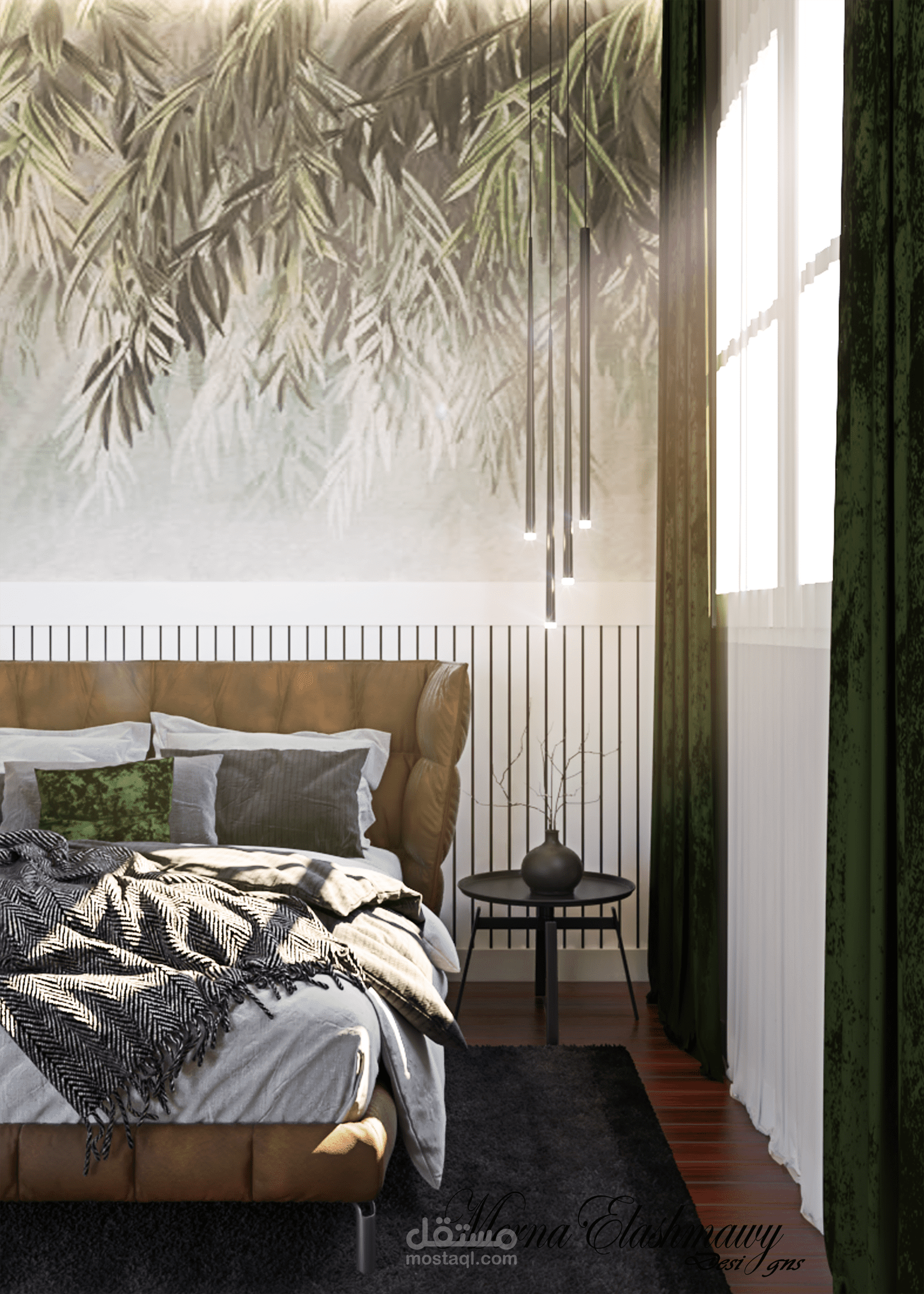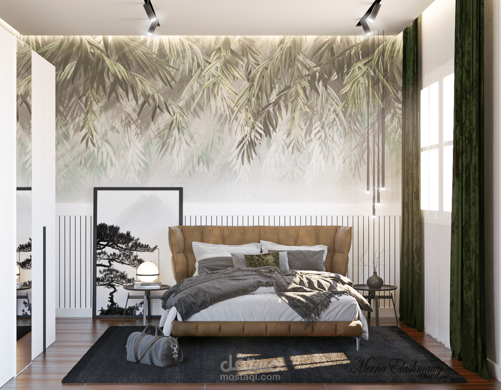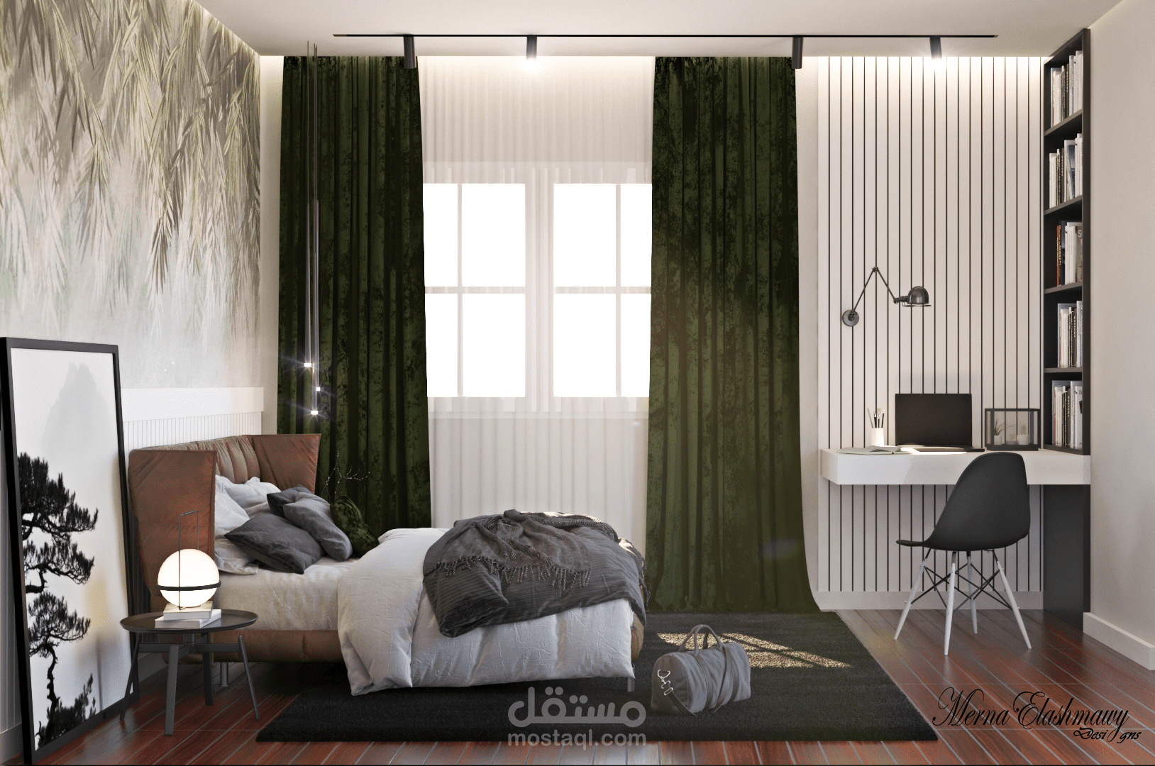 modern young man bedroom design with green shades