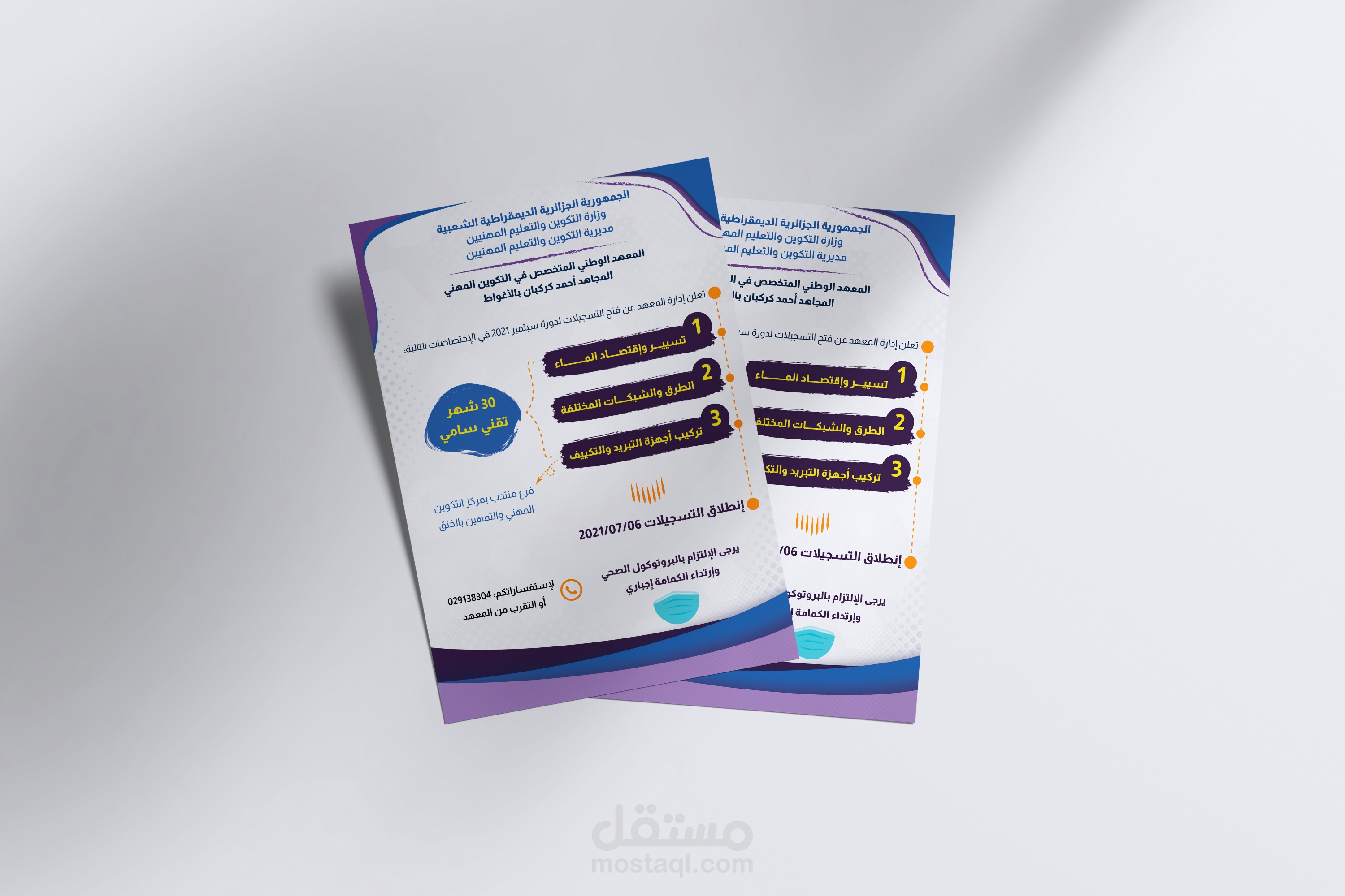 نموذج فلاير إعلاني لدورة في معهد التكوين المهني .