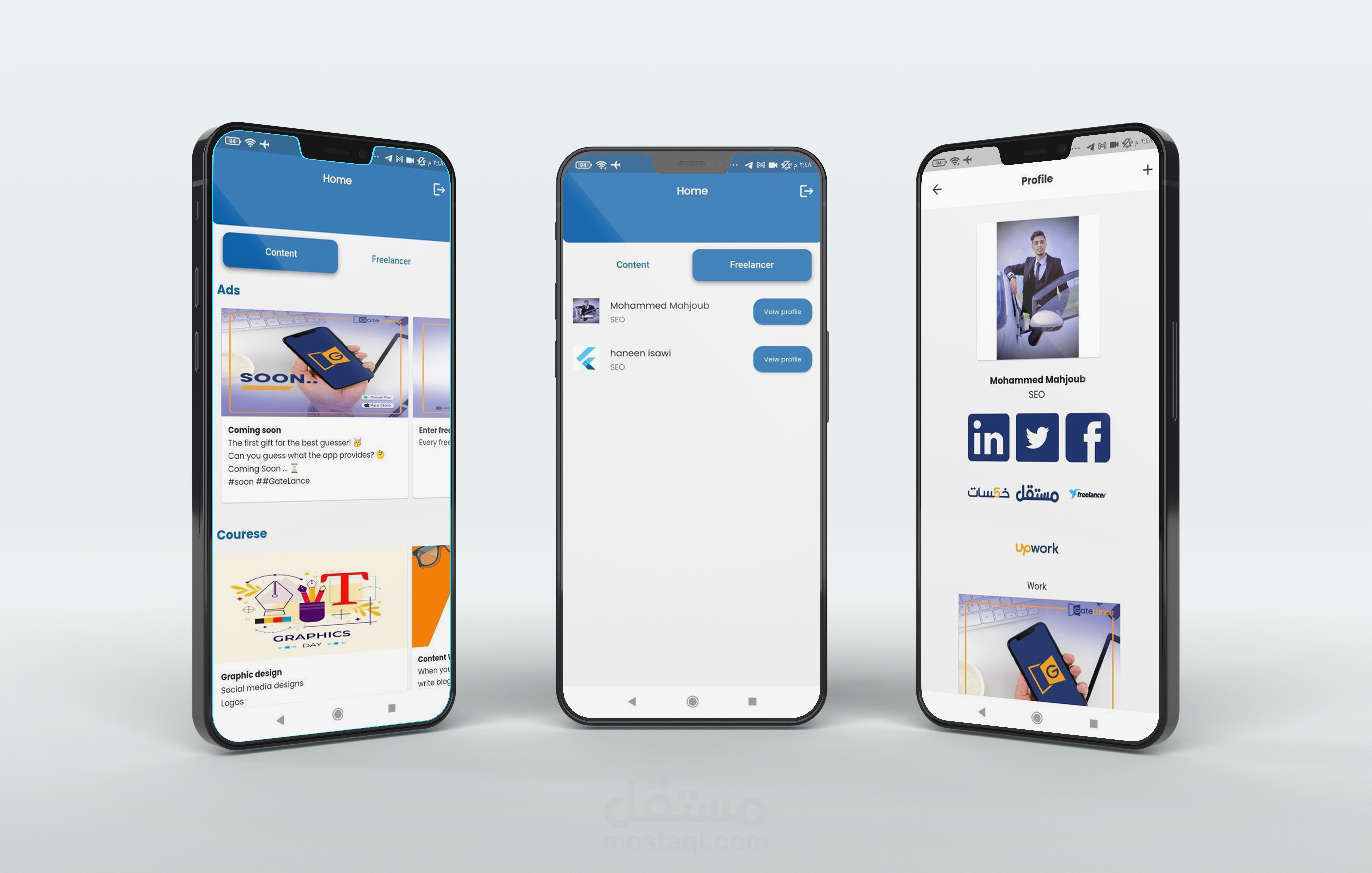 بإمكان المستخدمين تصفح العروض وطلب الخدمات بكل يسر، مما يجعل تجربة العمل الحر أكثر فاعلية وسلاسة.