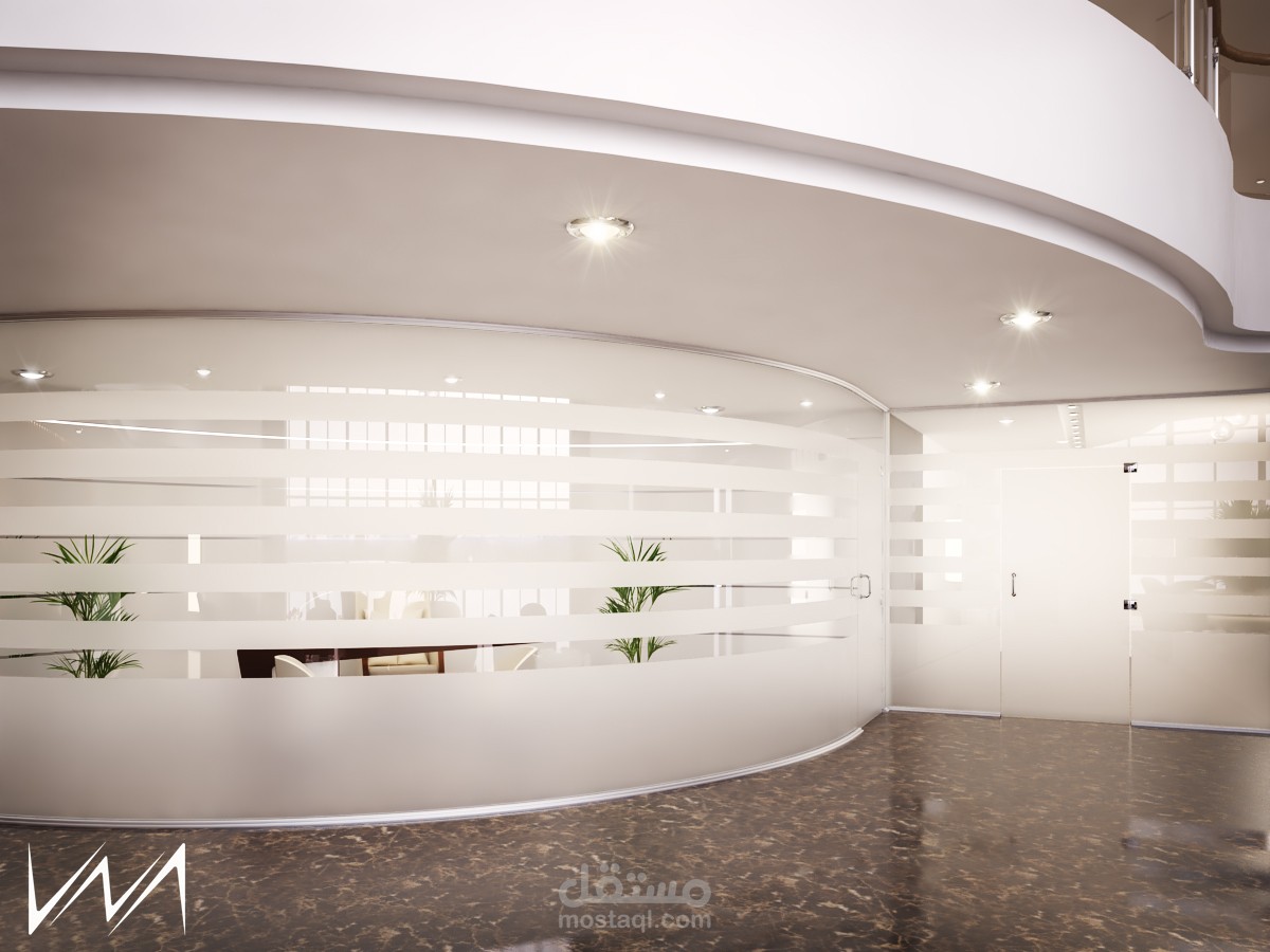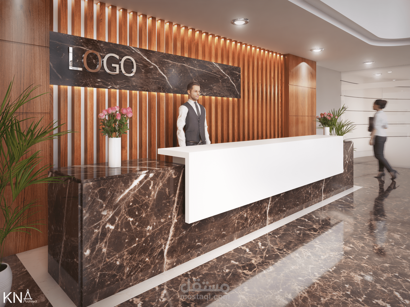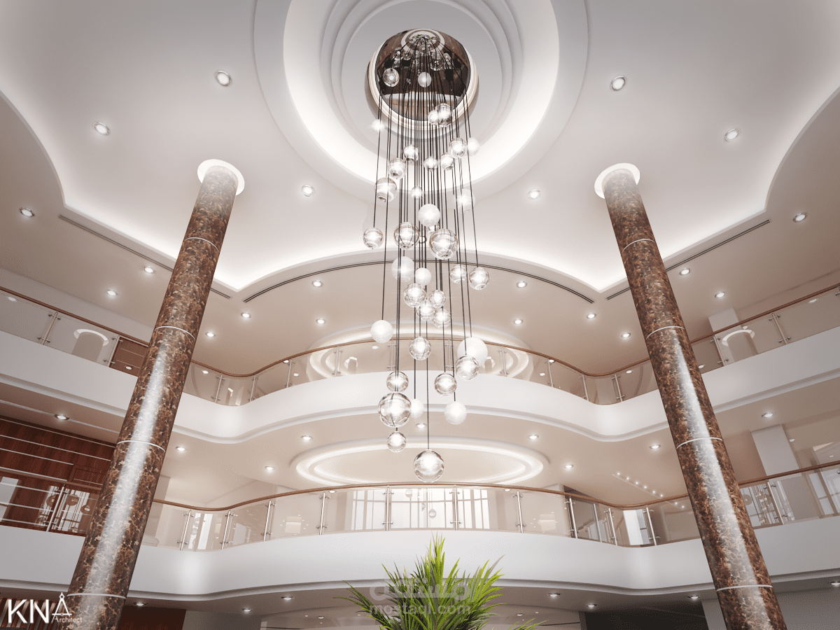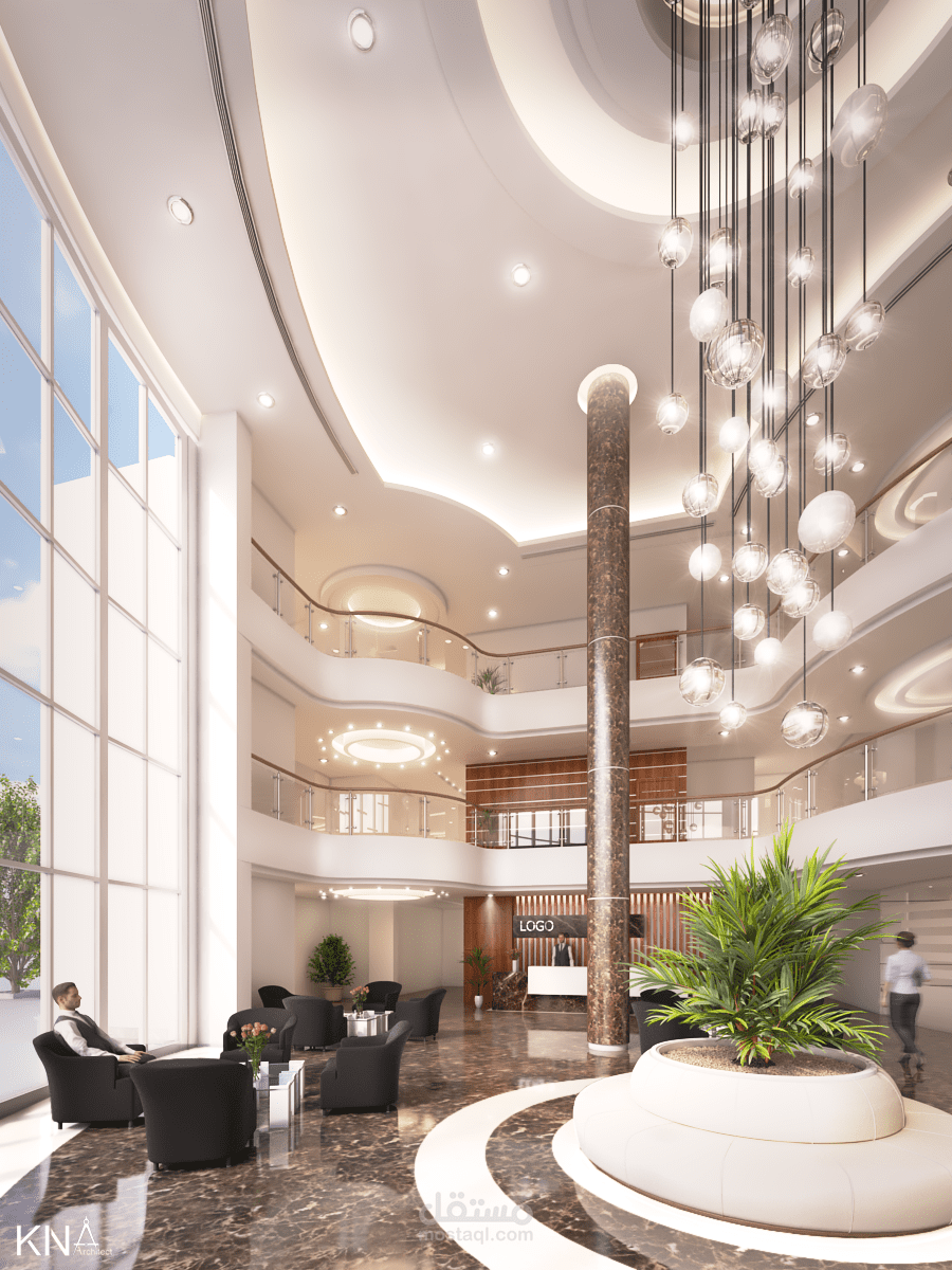 تصميم داخلي للوبي مبنى متعدد الاستعمال في مدينة الرياض السعودية