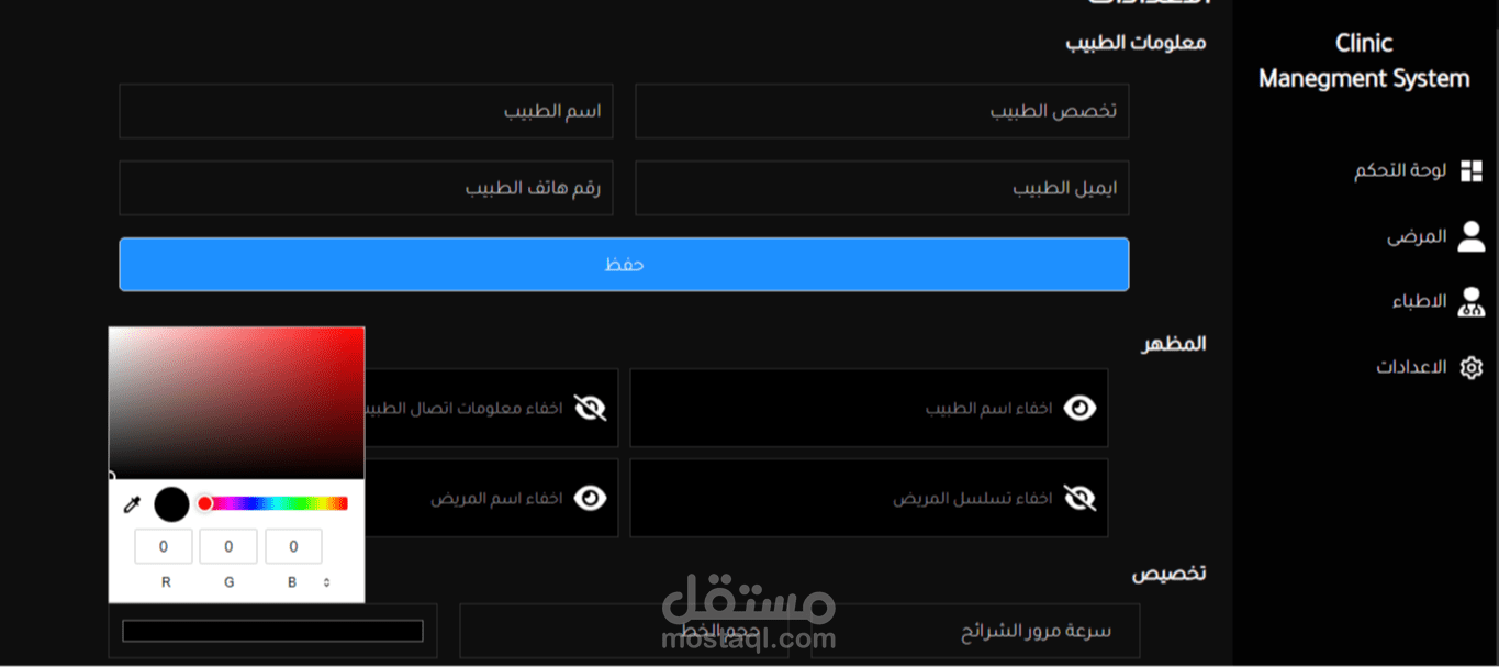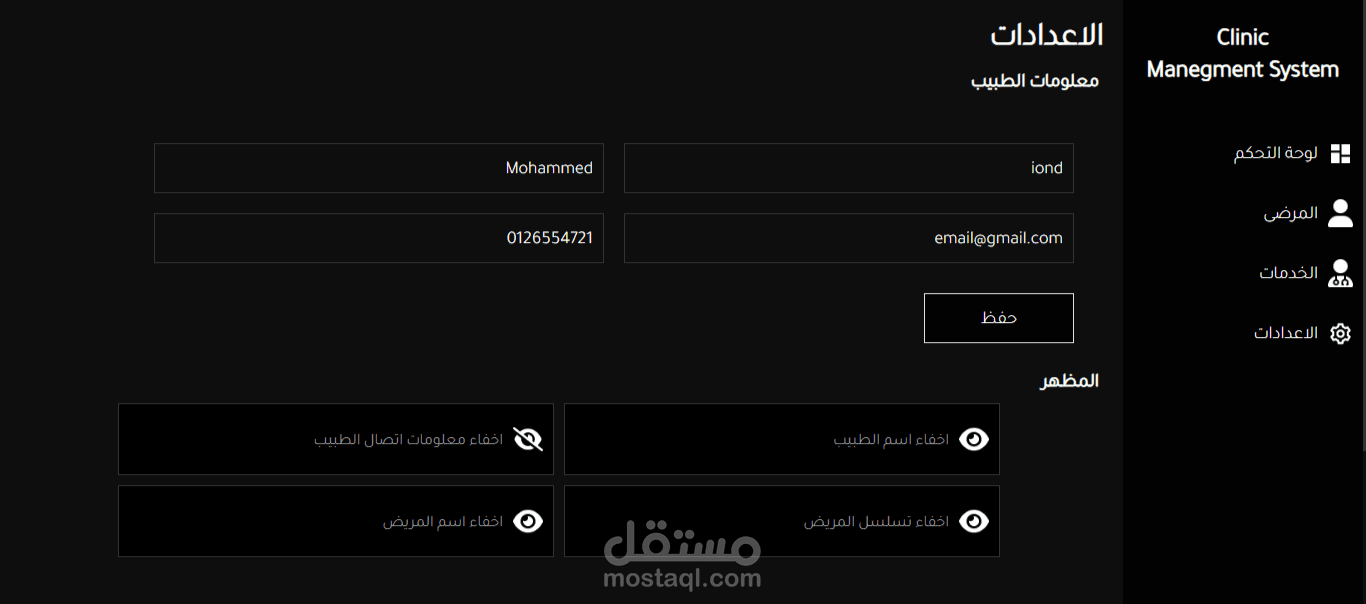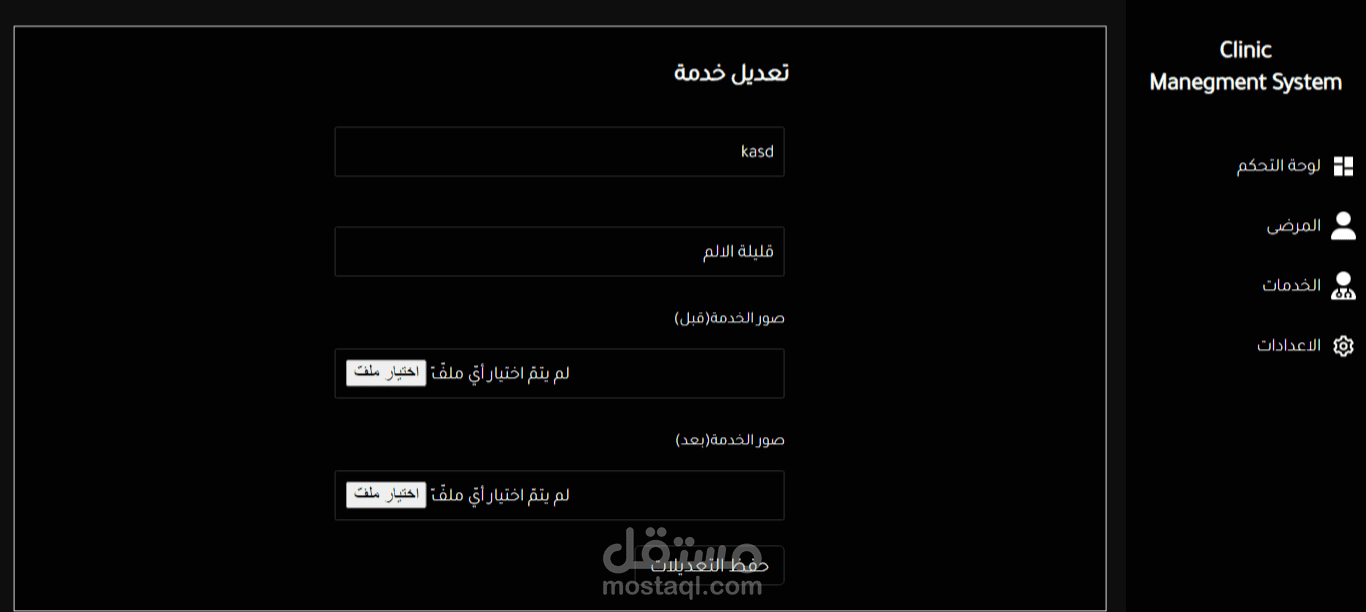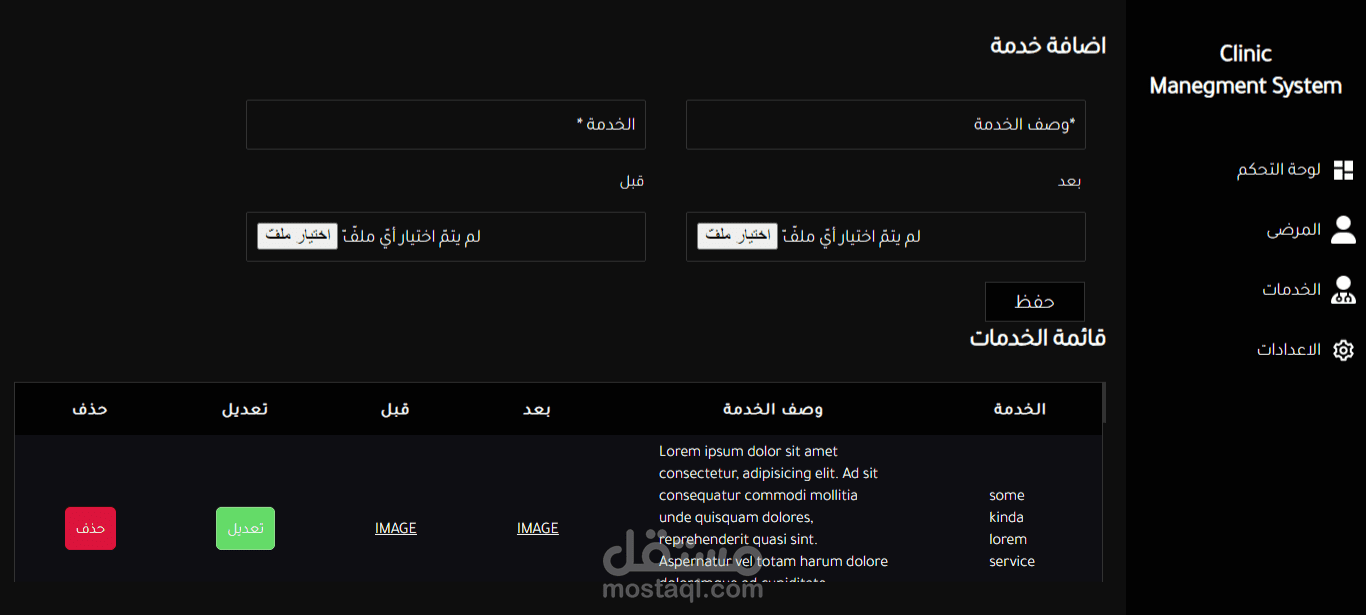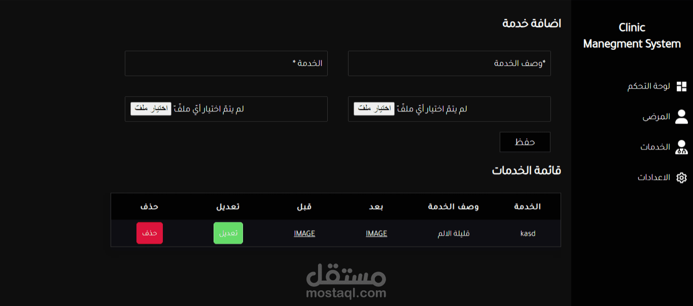 نظام طابور خاص بعيادة ' يقوم بعرض أسماء المرضى مع التسلسل الخاص بهم و مع لوحة تحكم مع إمكانية اضافة و تعديل و حذف مريض معين و ايضا إمكانية عرض الخدمات التي تقدمها العيادة مع صوت تنبيه عندما يحين دور مريض معين