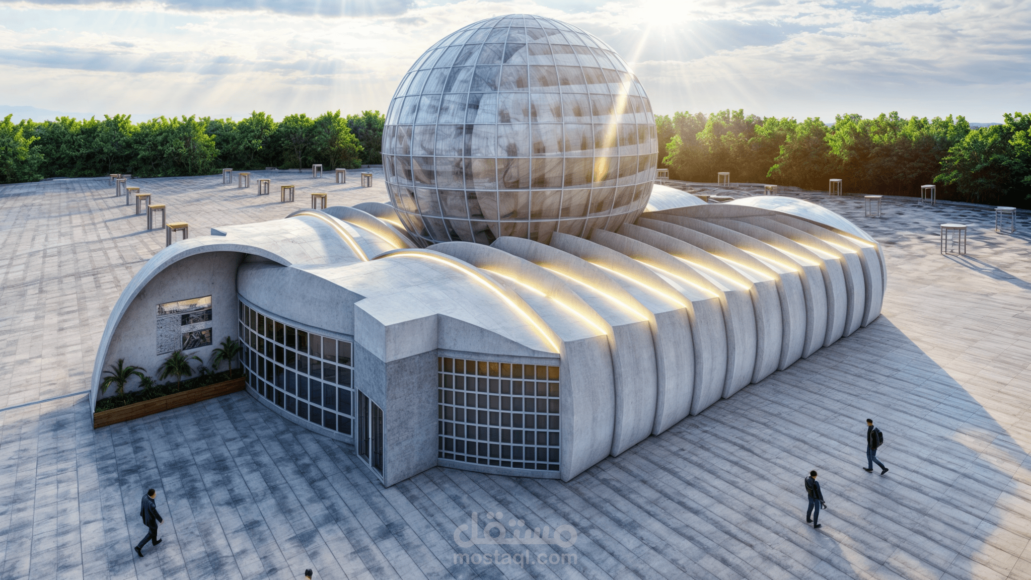 The building is inspired by the pharaonic scarab, with coverings in the form of wings and lighting on them