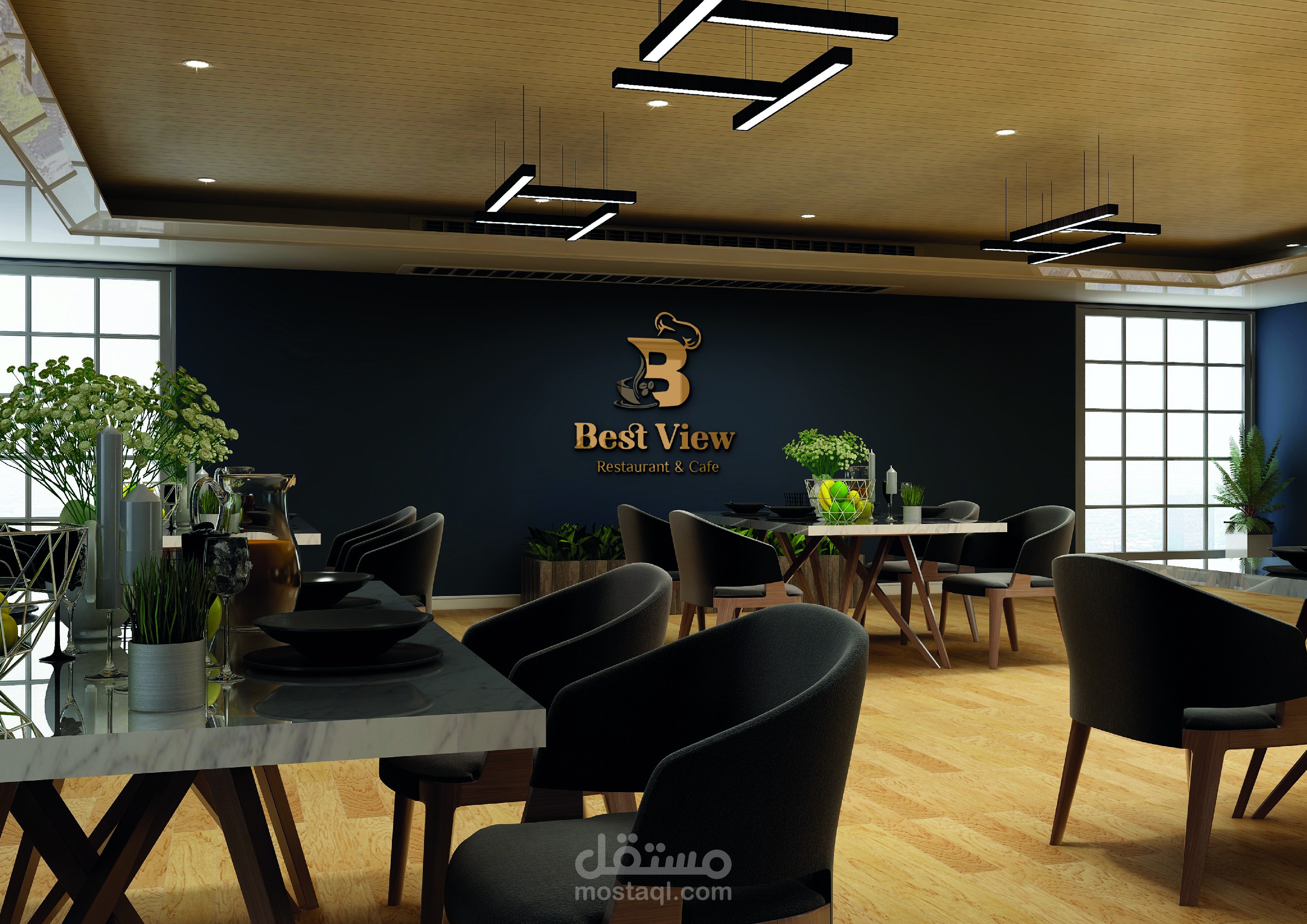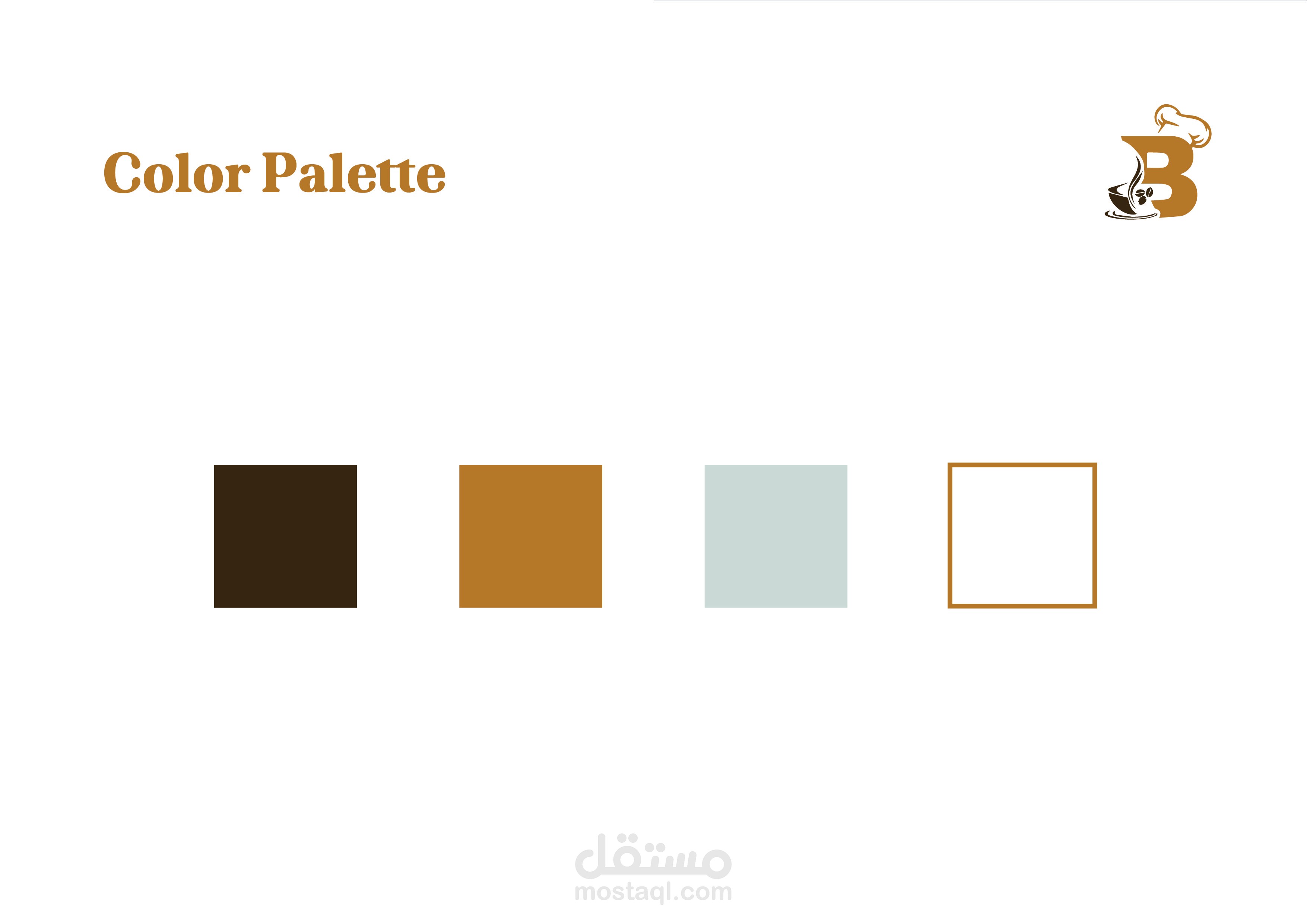 تم دمج حرف الB مع ايقونة الchef وأيقون الكافيه وأستخدام الالوان المناسبه التي تعبر عن الكافيه والمطعم